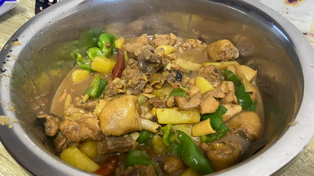 正儿八经的新疆大盘鸡,再配上劲道十足的皮带面,好吃😋!