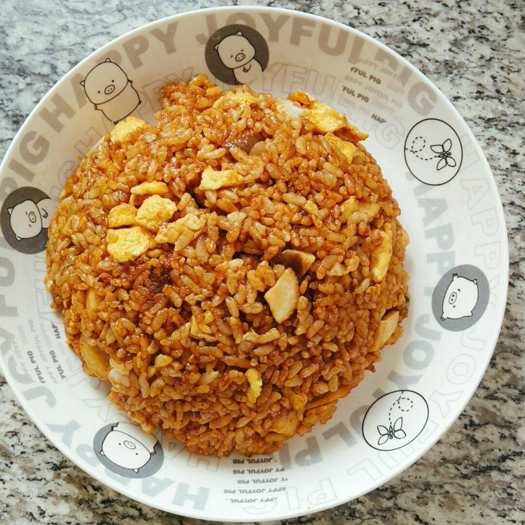 今日一人食。杏鲍菇鸡蛋酱油炒饭。美味。
