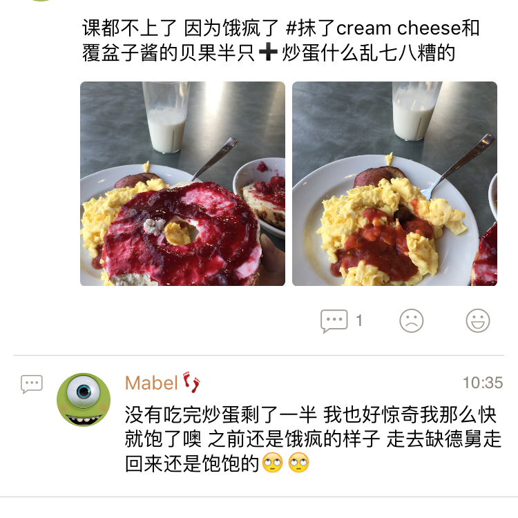 好好次的贝果!上着课就饿疯了 然后直奔食堂 路上就想好要吃贝果了 看到pancake啥的都没兴趣🙄