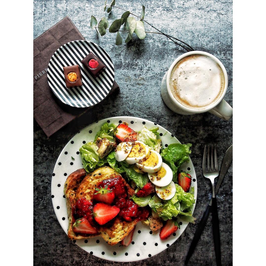 周末醒的越来越早,索性就早起吃早餐,也不用赶时间,最喜欢的周末早餐是法吐+沙拉+拿铁,今早上就让自己一次性都满足个够!