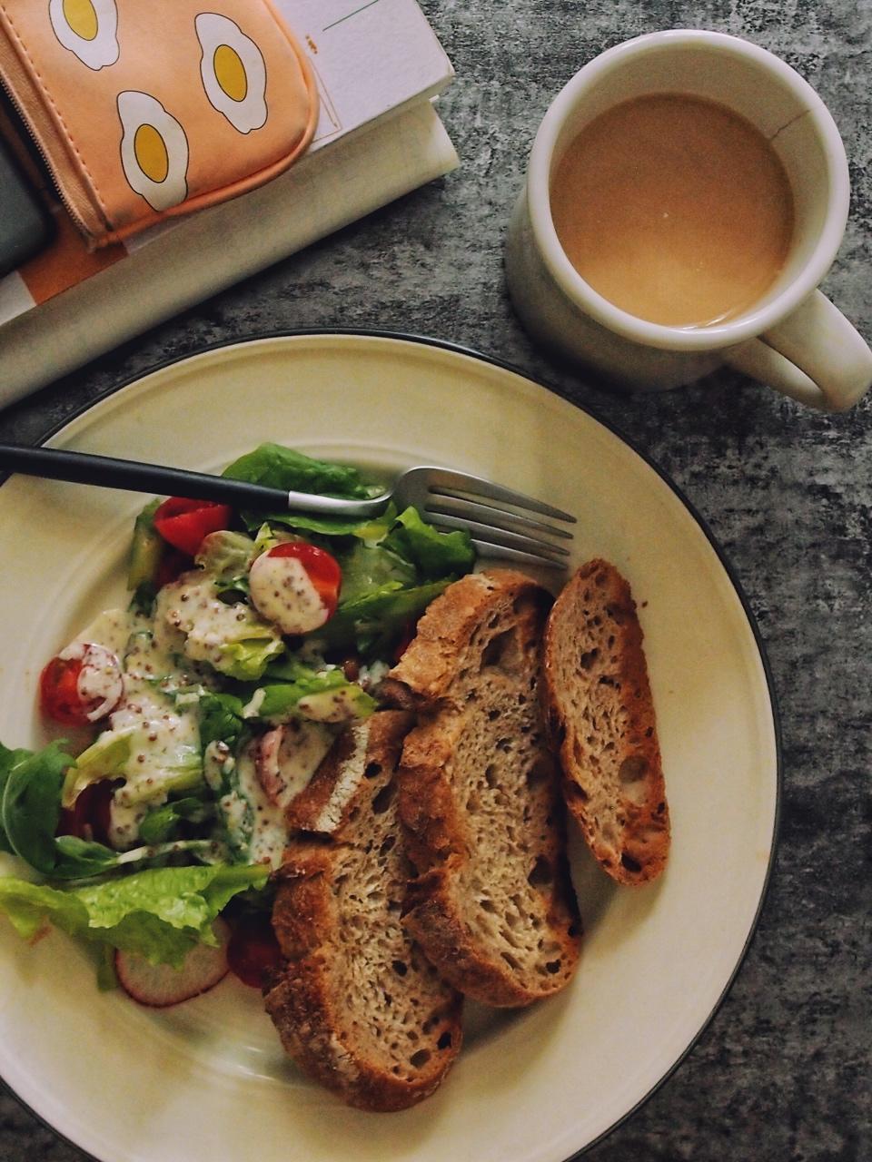 早饭的日常就是喝咖灰,啃面包,吃沙拉!