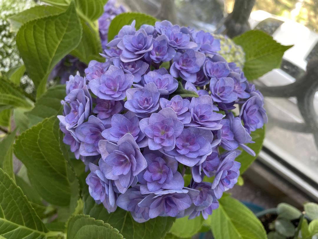 今日阳台~绣球果然是多变的花花,一大颗上有深紫的浅紫的蓝色的,还有未开的未知的。好好拍了一阵😄