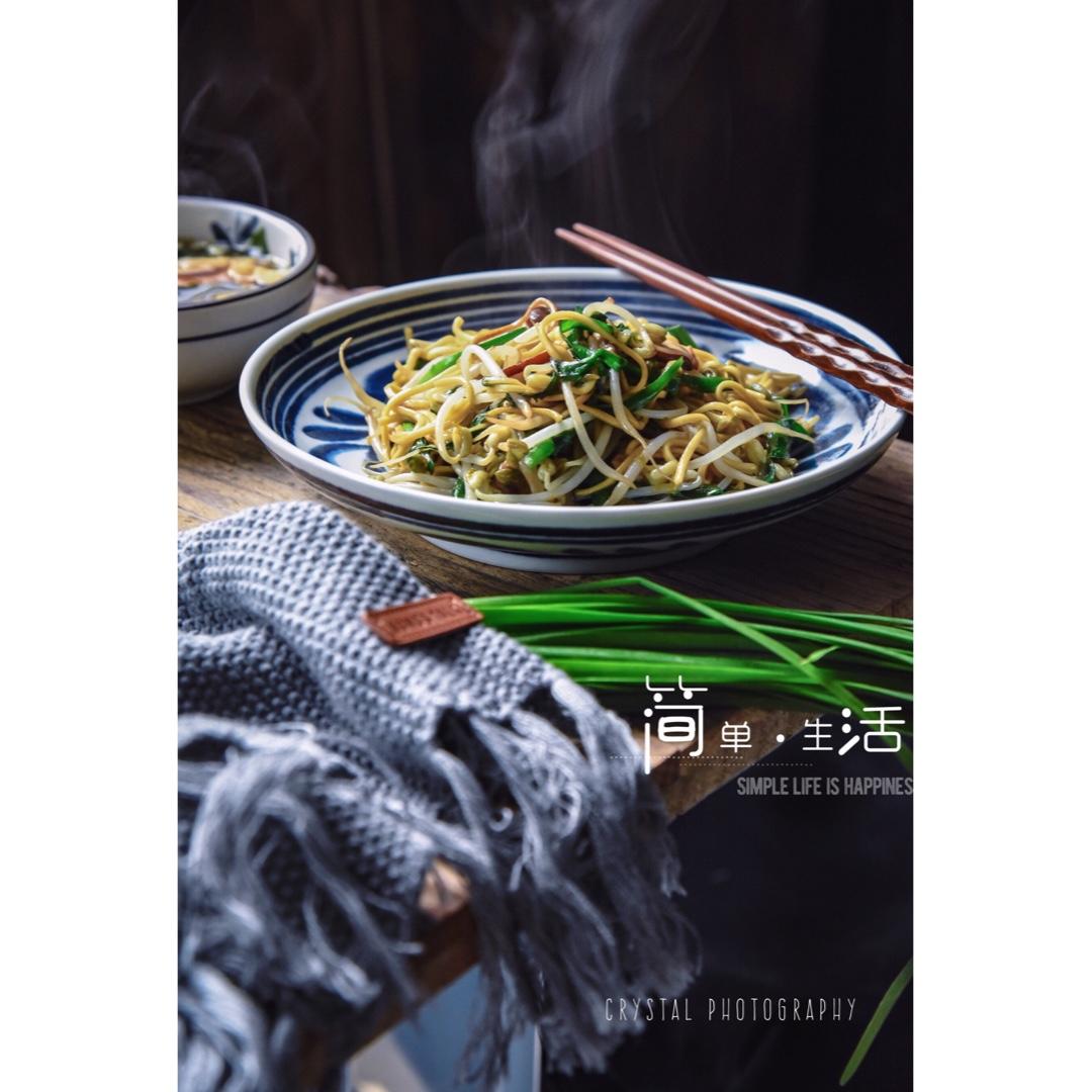 韭菜豆芽炒面,自从家里来了只豆芽机,真的天天豆芽菜的节奏……