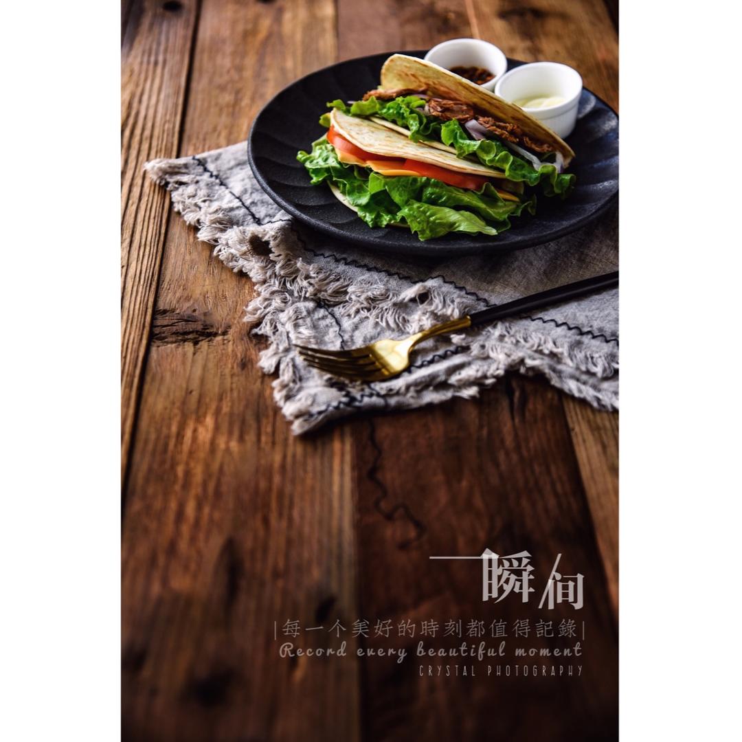 没有玉米饼,就煎饼吧~~辣牛肉一个字:爽!