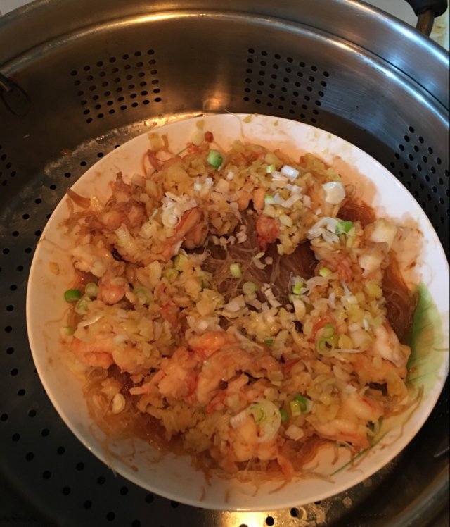虾蒸了七分钟有点蒸老了,别的还不错,为了方便吃虾皮都剥了,蒸完虾都打卷了,卖相就不太好了😔😔😔 #晚餐•2016年2月2...