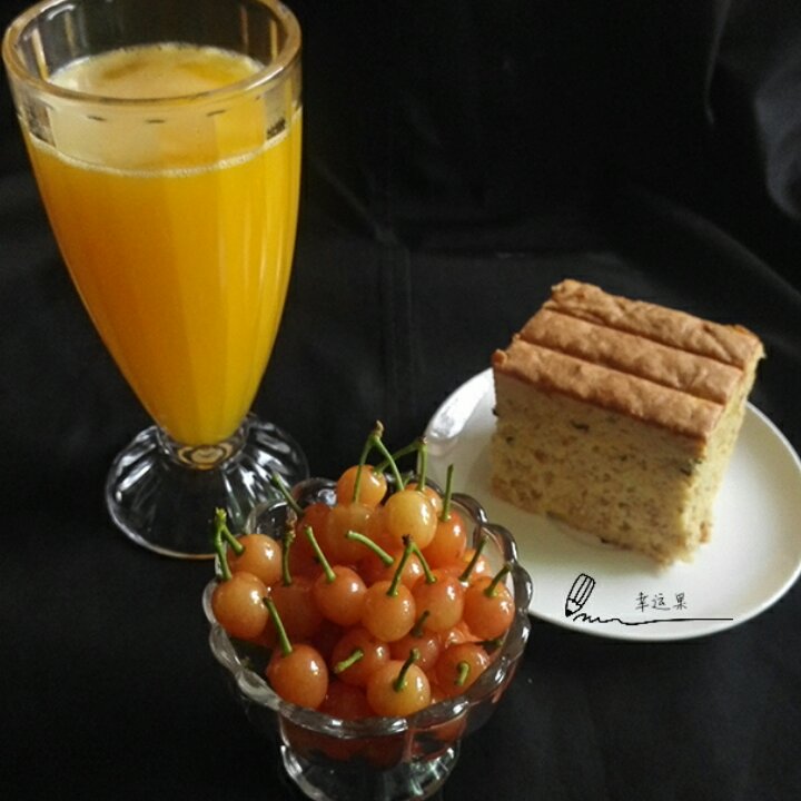 宝贝的健康早餐!肉松海苔蛋糕,南瓜银耳露,樱桃(昨晚女儿跳完舞,回家都8...