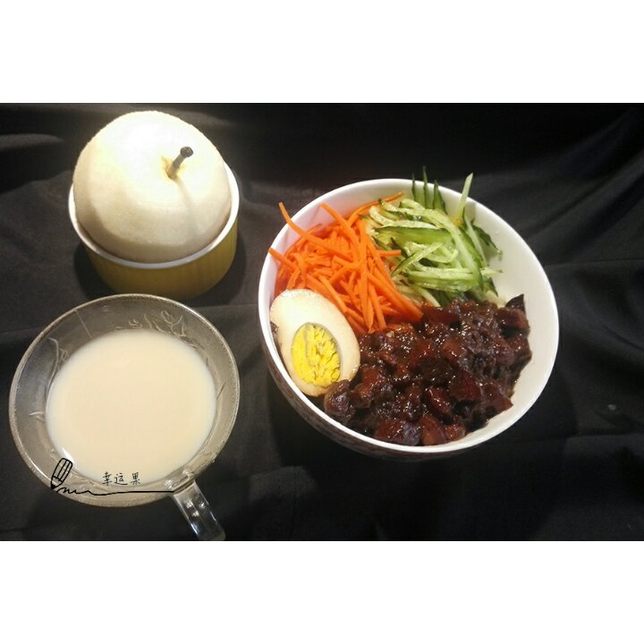 宝贝的健康早餐!台式卤肉面,皇冠梨,酸奶。