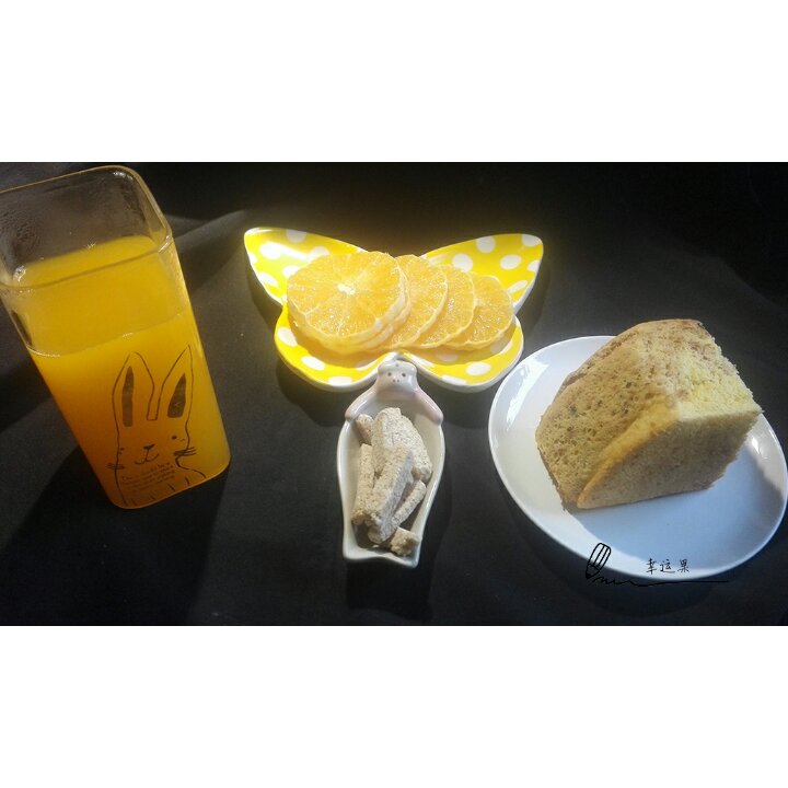 宝贝的健康早餐!肉松海苔蛋糕,白芝麻条,南瓜银耳露,甜橙。(又是一个星期...