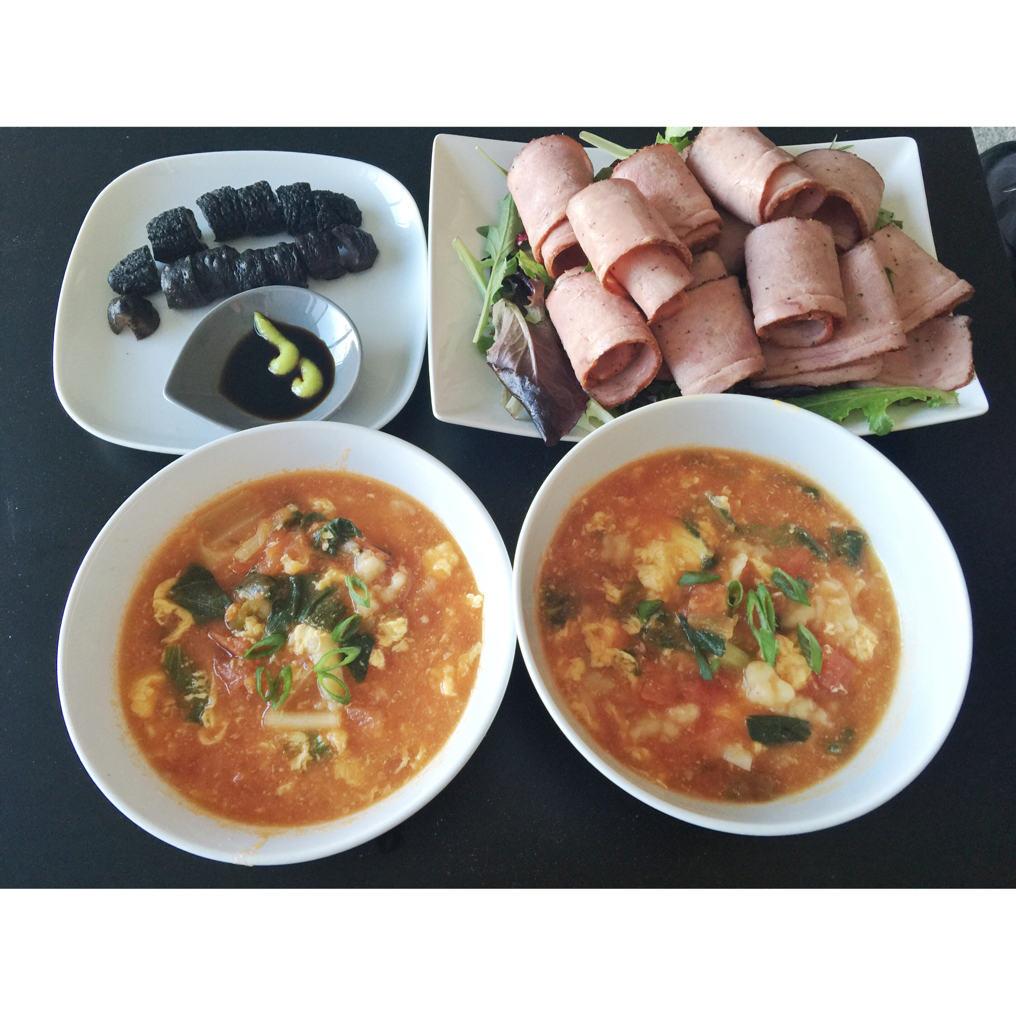 疙瘩汤 + 海参 + turkey ham沙拉