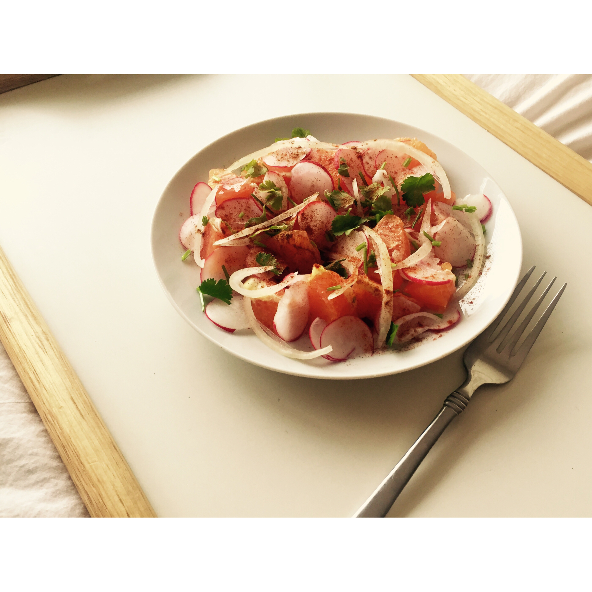 甜橙+樱桃萝卜+洋葱+肉桂+孜然+Paprika+柠檬汁+橄榄油