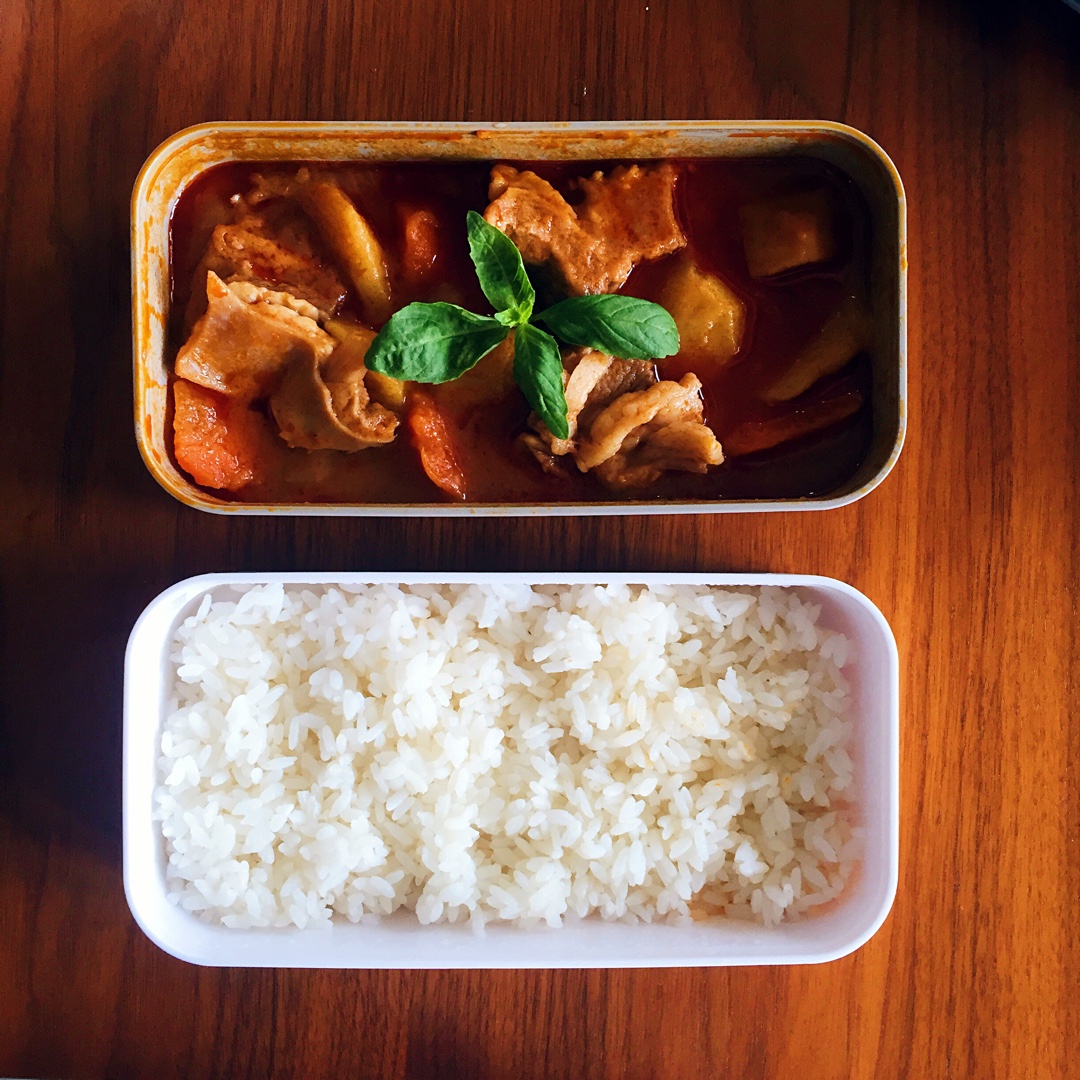 同事A从泰国带回来的红咖喱,同事B自家种的罗勒