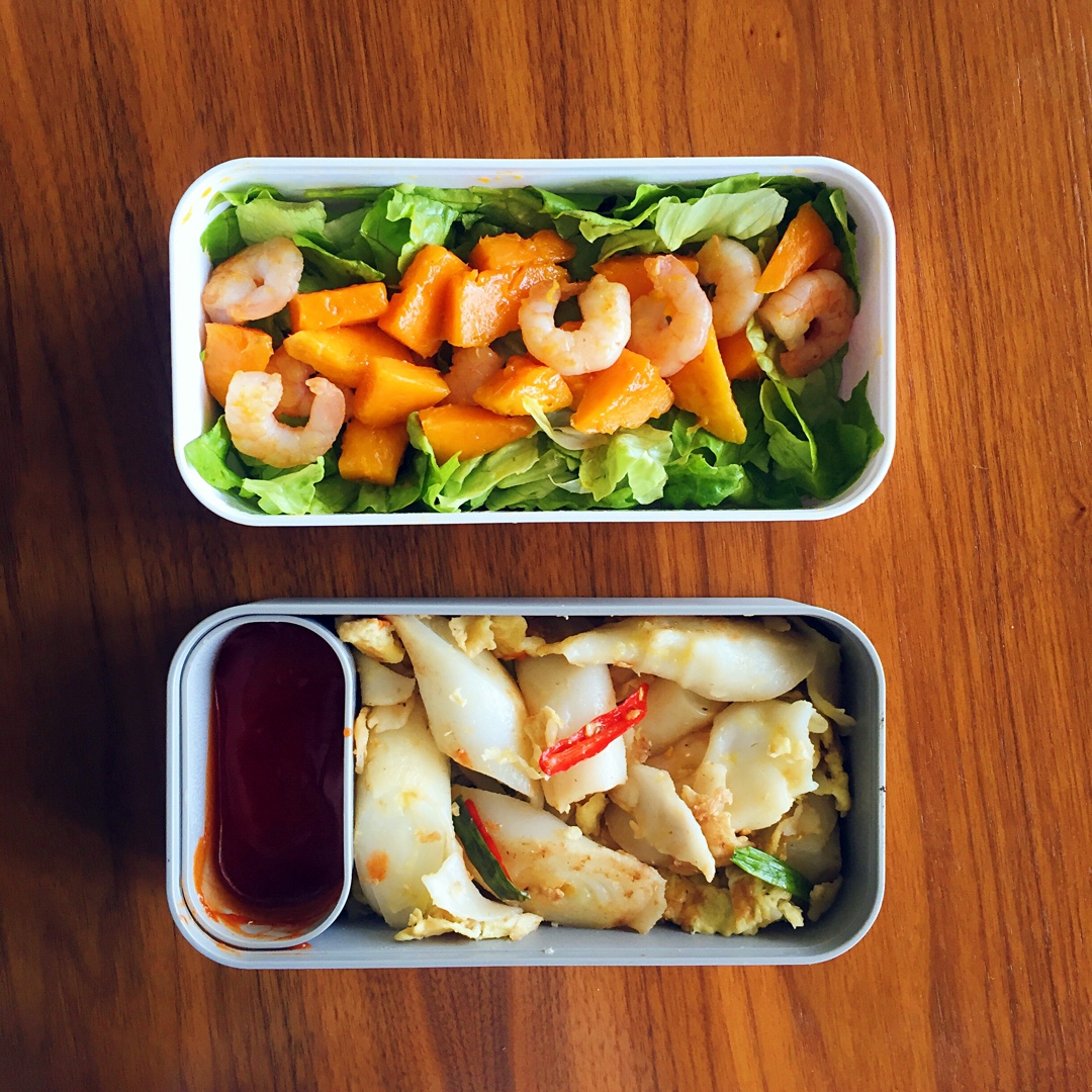 周六在三源里菜市场买到了猪肠粉,直到今天早上做便当的时候还在纠结要做成混酱肠粉还是蛋煎肠粉,不管哪一种都是满满的中学记忆...