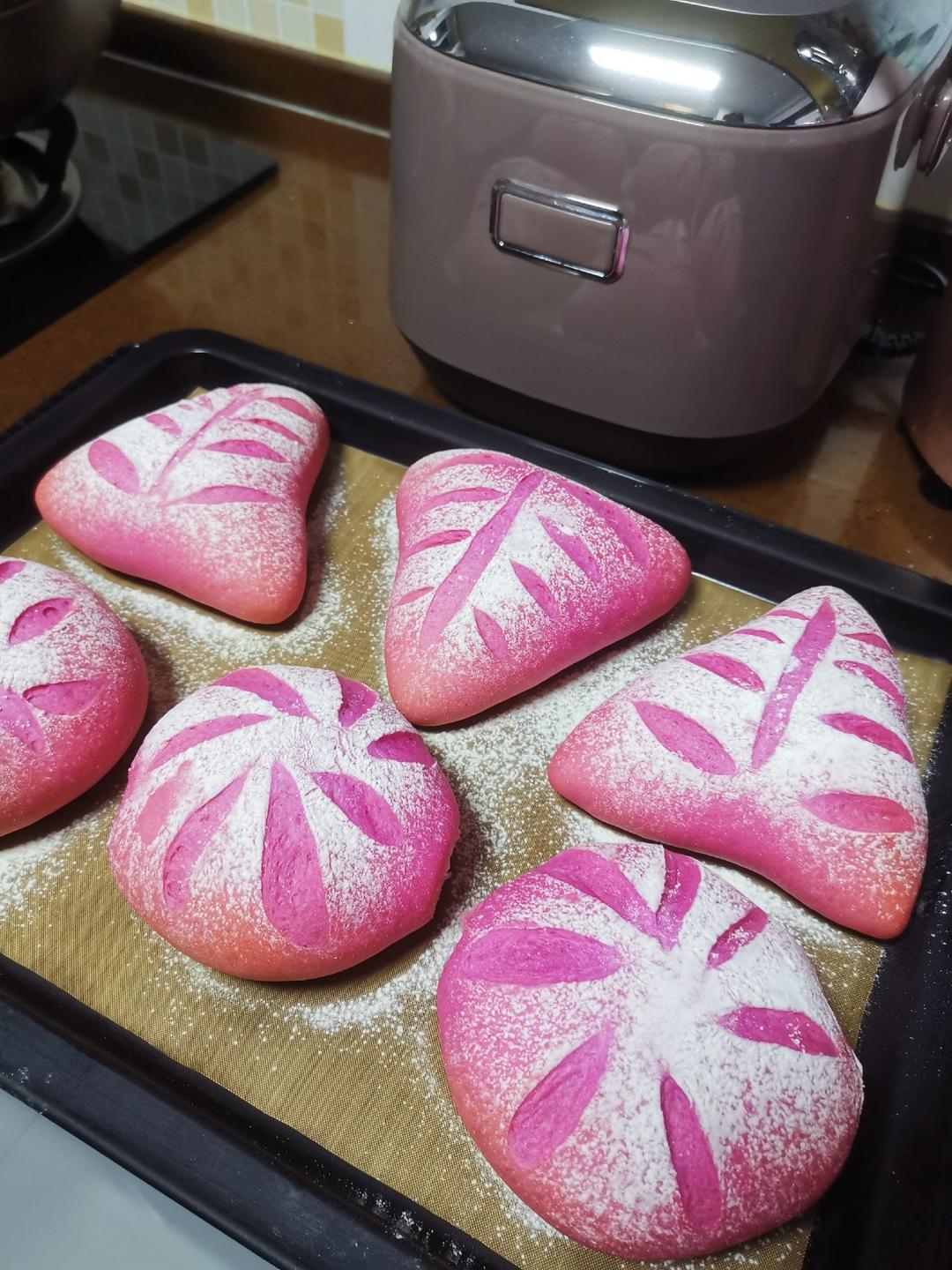 火龙果奶酪软欧,颜值爆表、味道也超美,奶酪馅里加了蔓越莓,越嚼越香