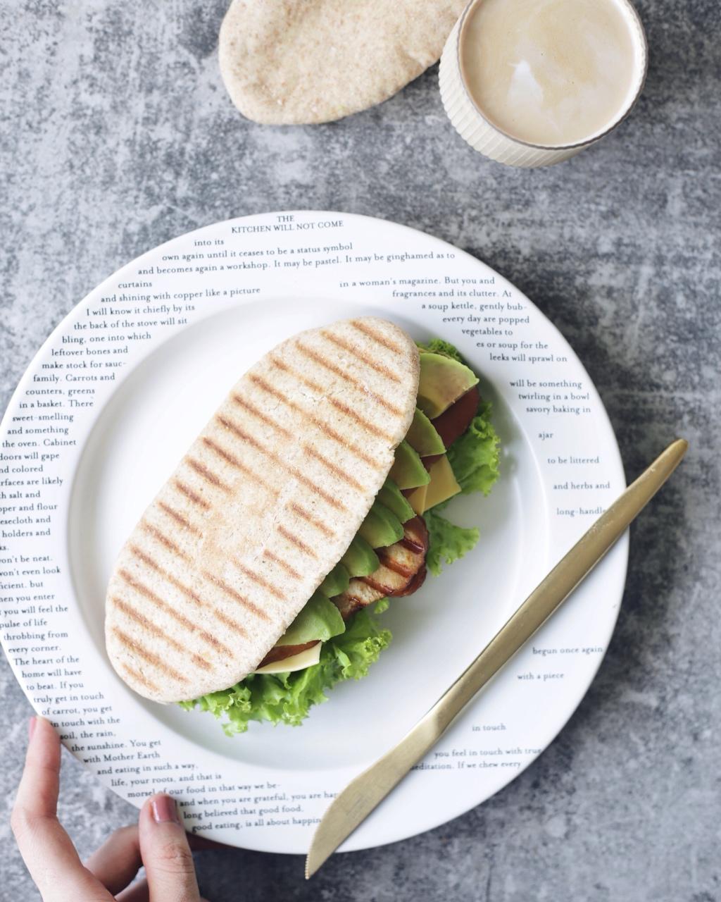做了心心念念的皮塔饼,全麦哒,真喜欢看着它们在烤箱里涨成小气球的过程。