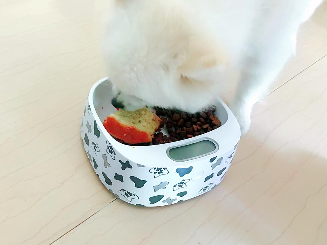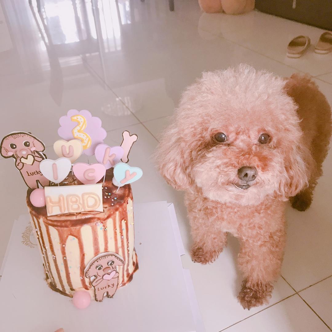 宝贝吃的很开心呀!一半狗粮一块蛋糕😌