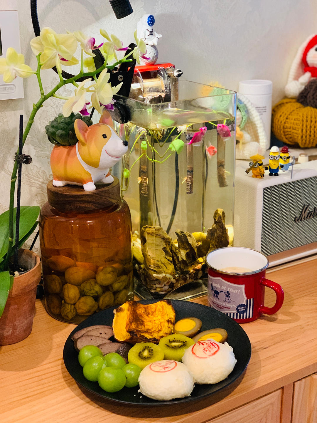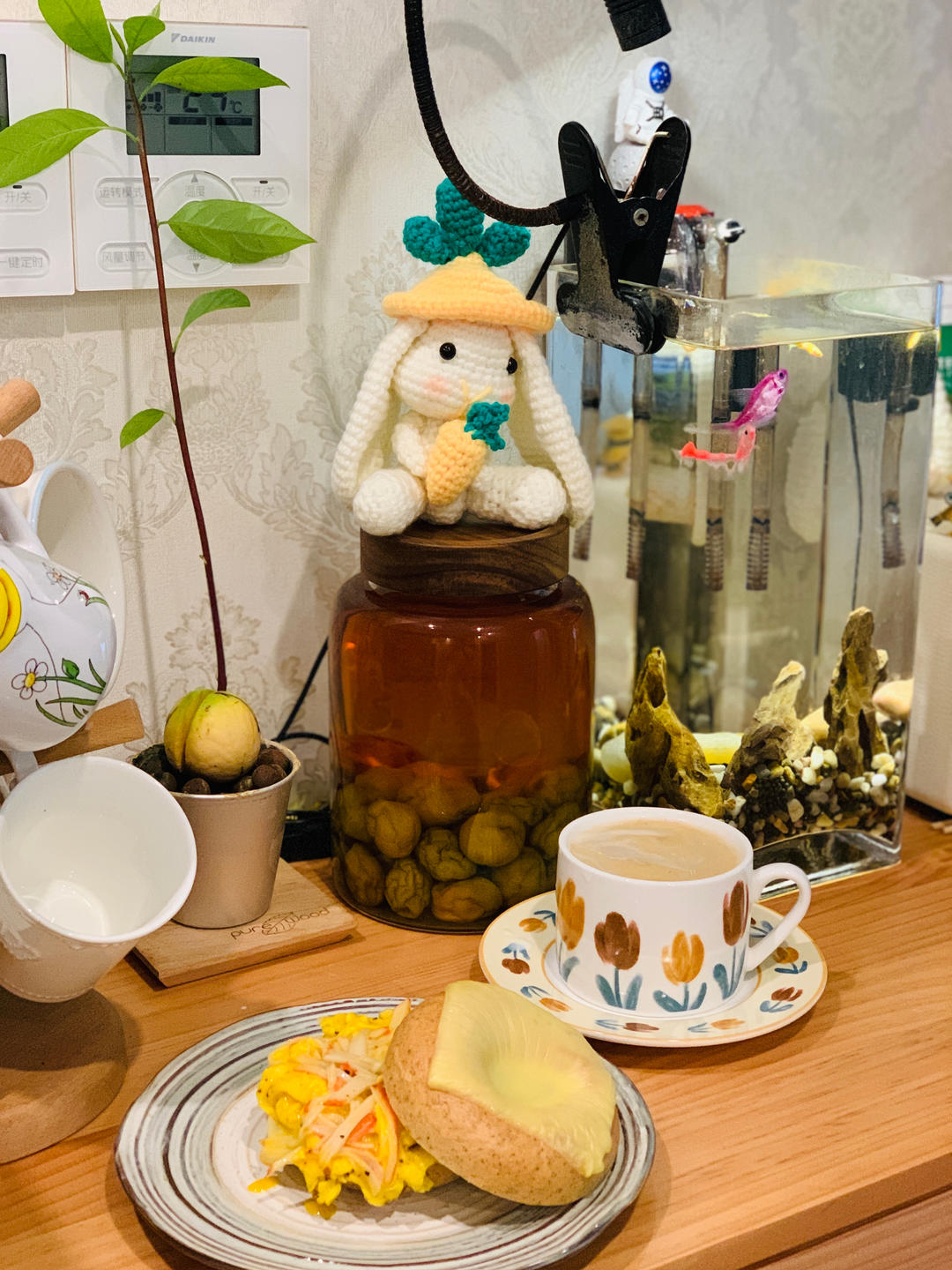 早餐糊弄学继续,烤了半个南瓜,切个卤蛋,冰箱库存小餐包,水果来一点,又是糊弄的...