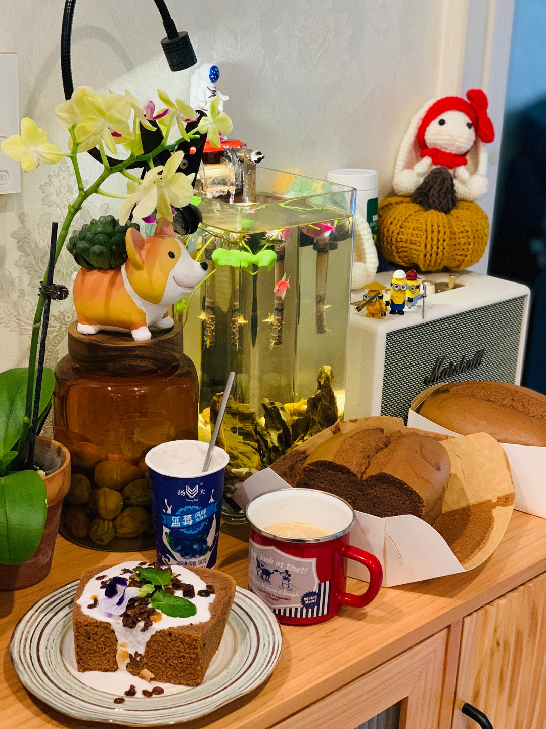 好久没做金枕蛋糕,撸了6蛋系列,切块淋上酸奶,撒...