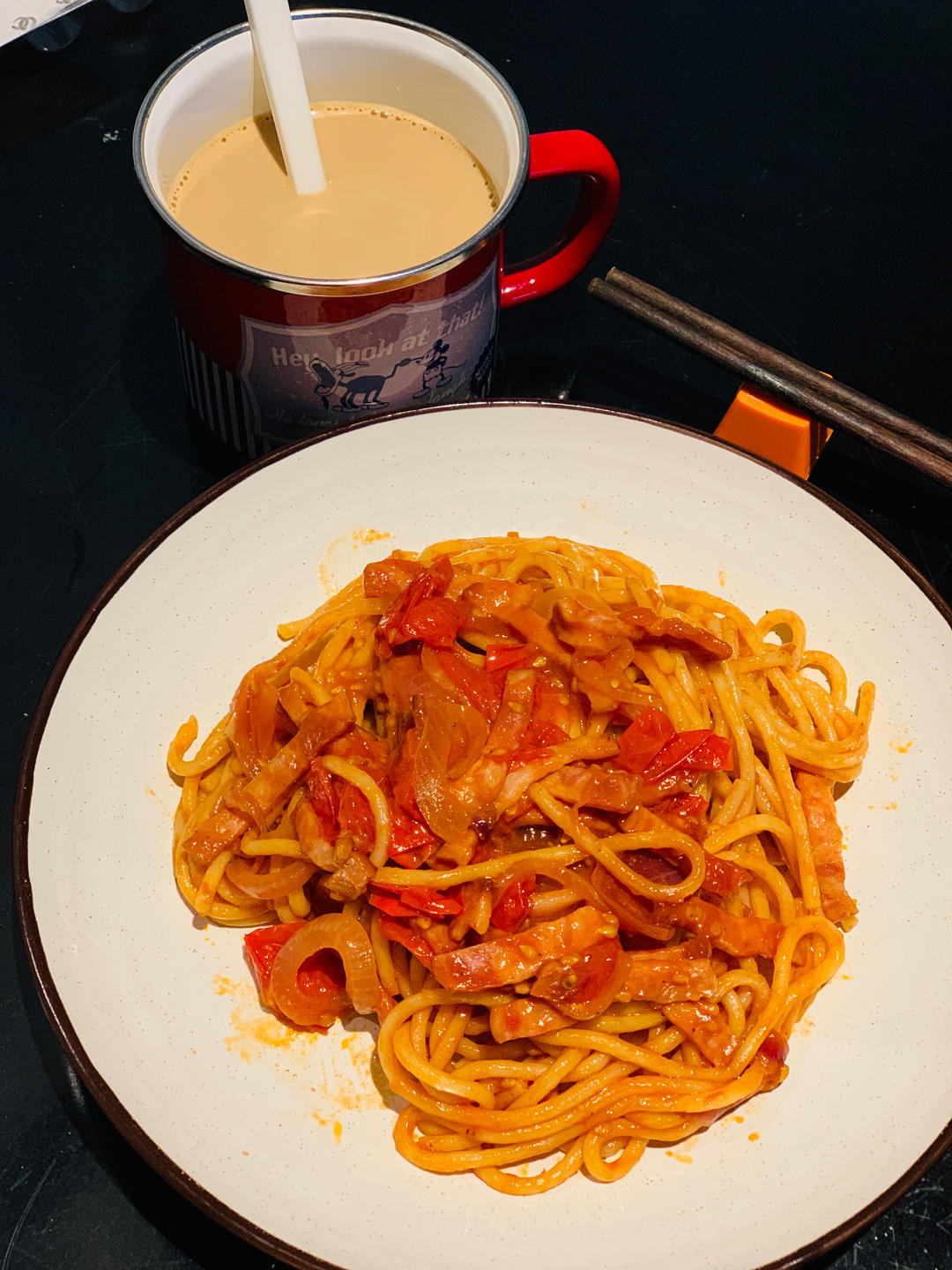 番茄培根意面,电饭煲做的,小姐姐很震惊,她说第一次看到电饭煲能做意面,她不知道...