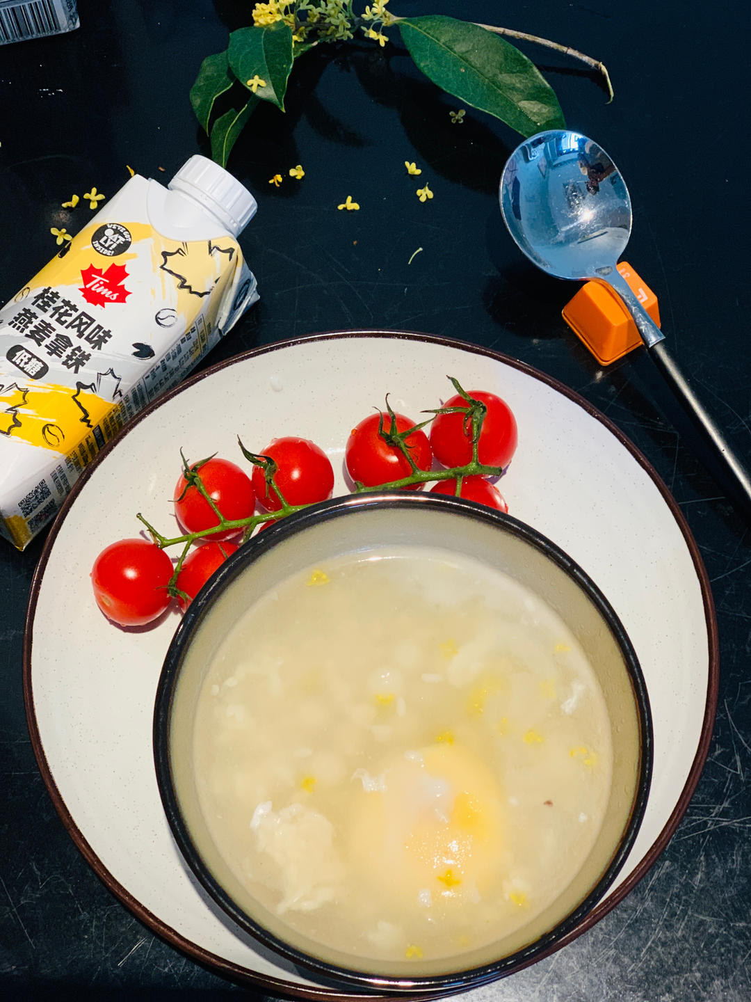 祝大家国庆节快乐,酒酿圆子和鸡蛋,采了一把新鲜桂花放里面,品秋啦[愉快]