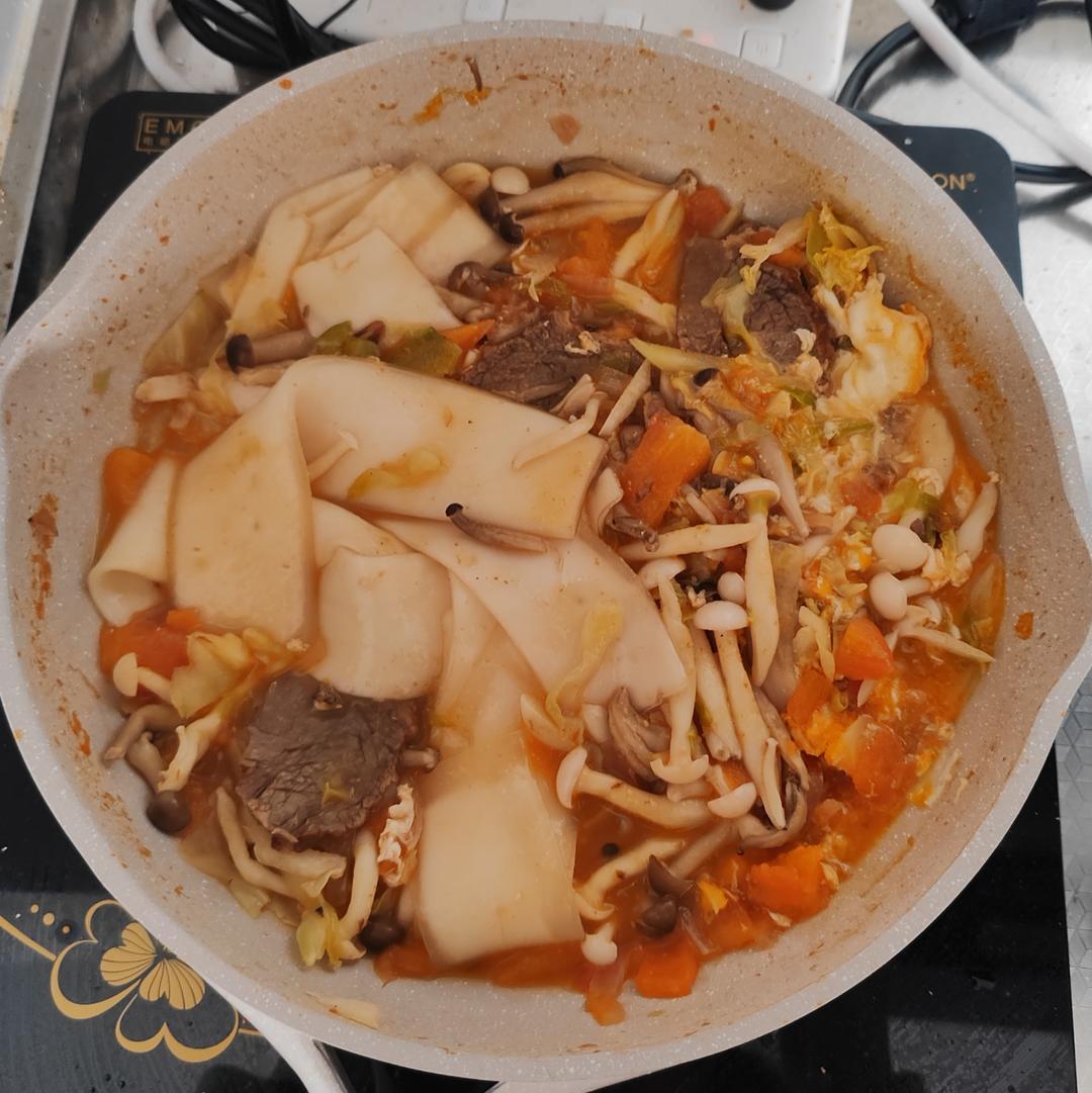 又忘了拍了,就当有吧,吃光光,三个番茄,一个榨汁,两个切碎了炖,加牛奶