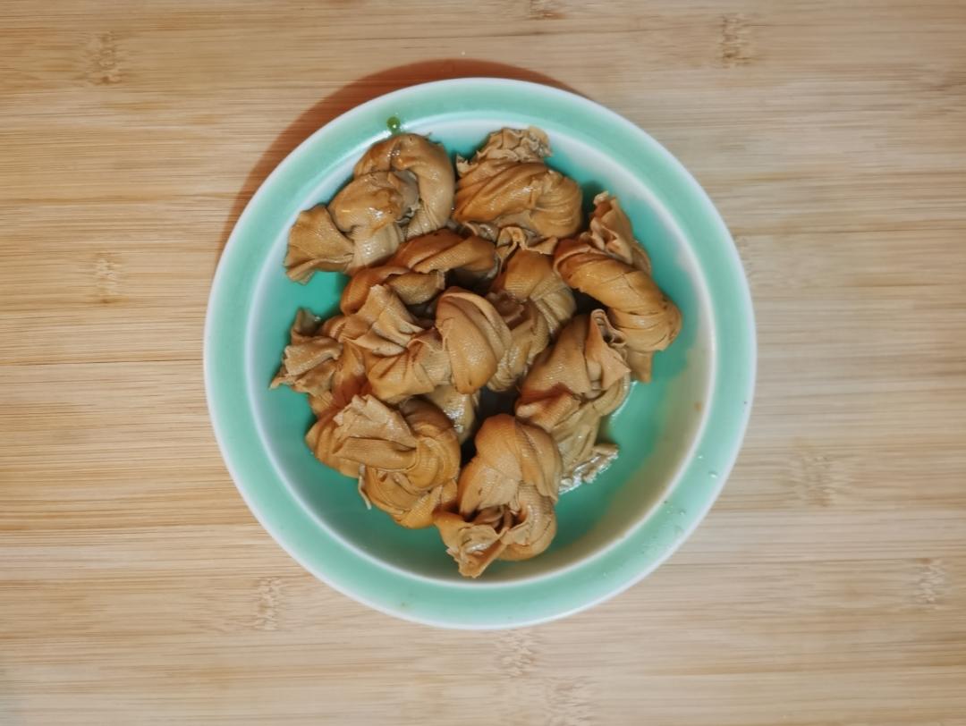 放了三个魔鬼椒,顺便把库存的百叶结和豆筋一锅卤了,嘻嘻(♡˙︶˙♡)好吃!