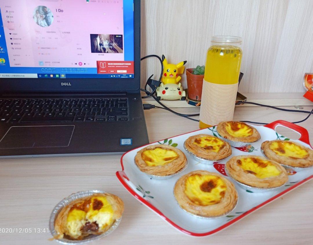 挞皮按方子,馅1.5倍8分满,马芬模做了8个,可能是我搅拌太用力,烤完馅上面有泡泡,所以用巧克力酱装饰了一下。我不爱甜,...