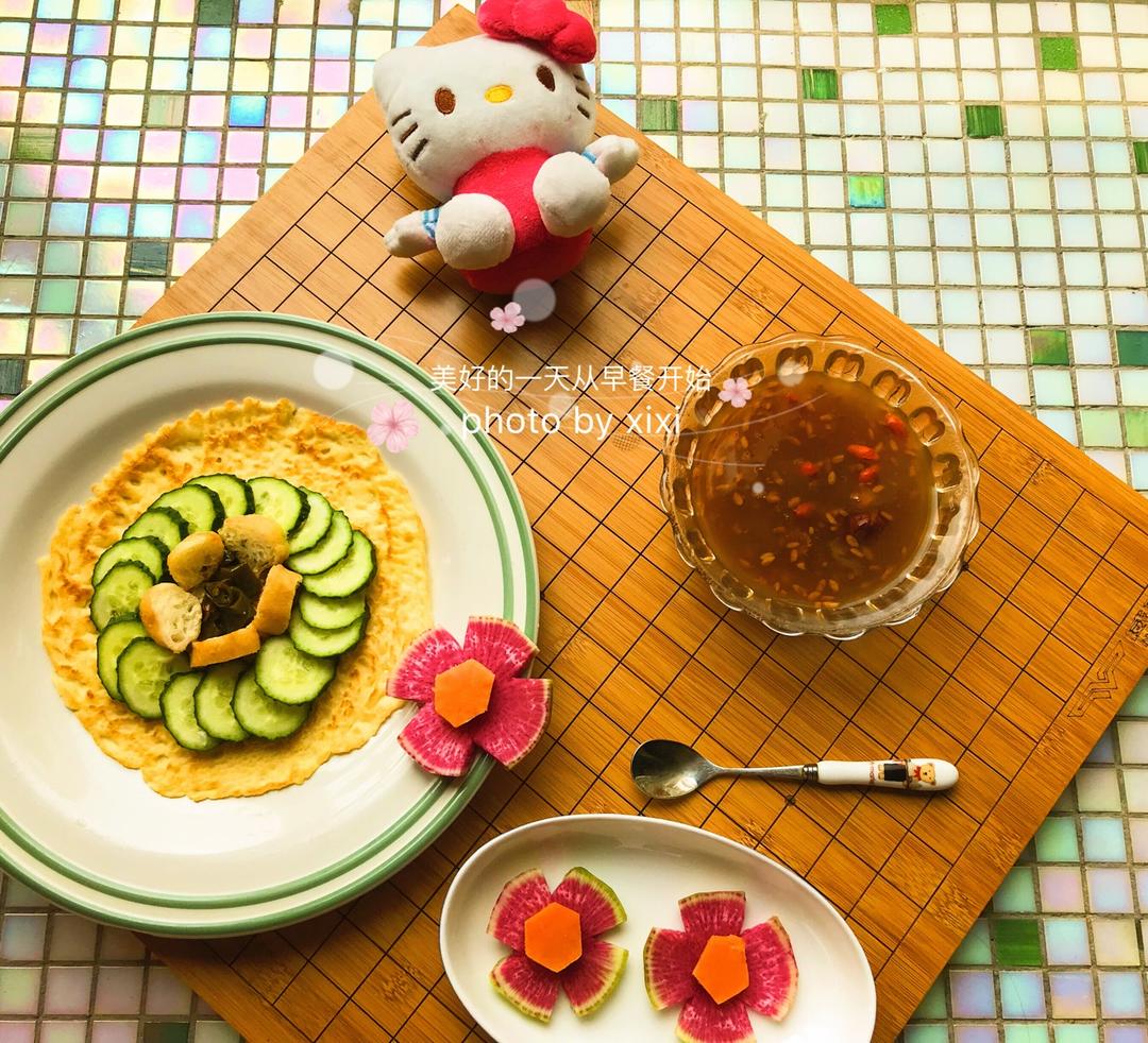 Day7💁🏻鸡蛋煎饼🥞配枸杞红枣醪糟汤🍵红薯🍠萝卜