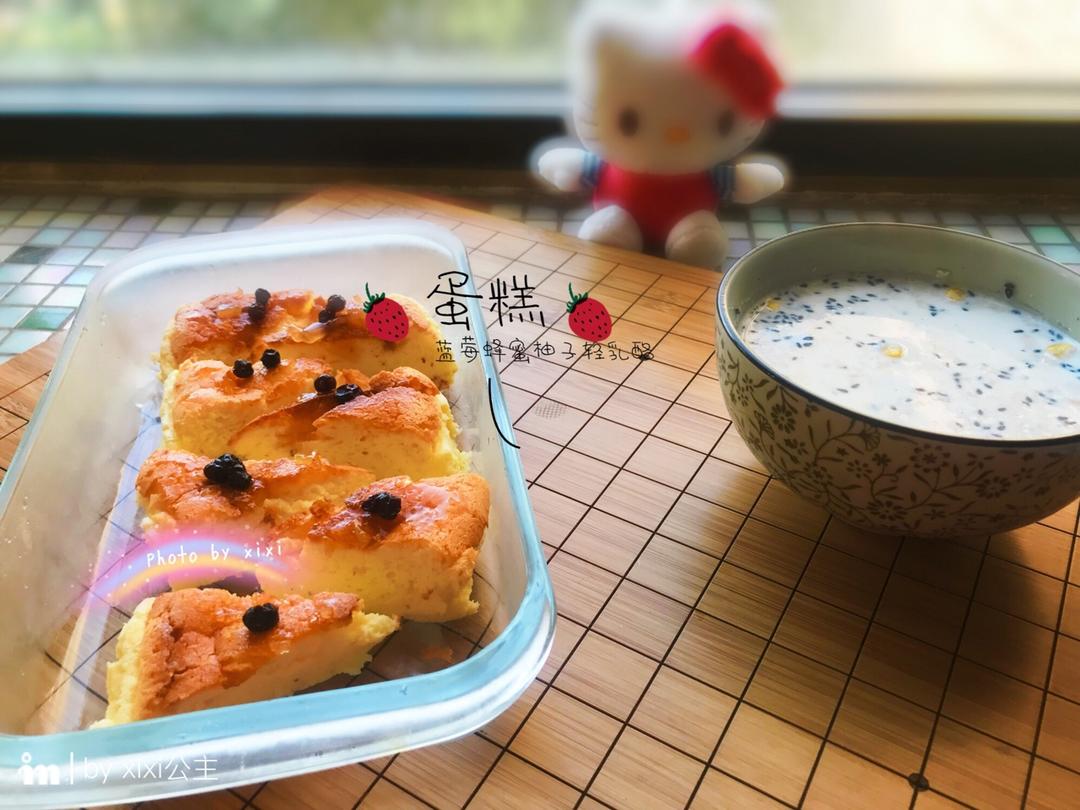 蓝莓蜂蜜柚子乳酪蛋糕🍰配椰子芝麻麦片牛奶🥛好好吃早饭