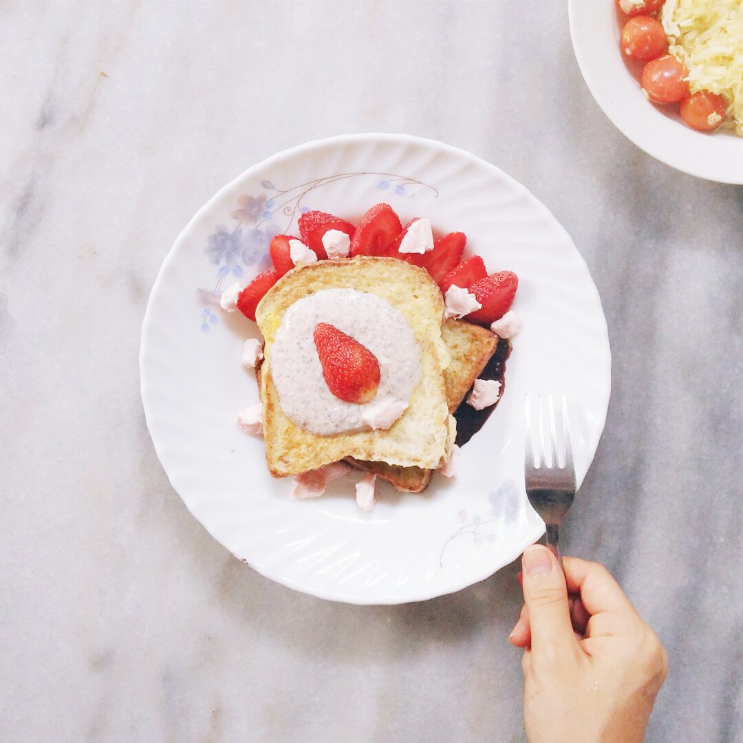 早,買了草莓就做了 strawberry chocolate french ...