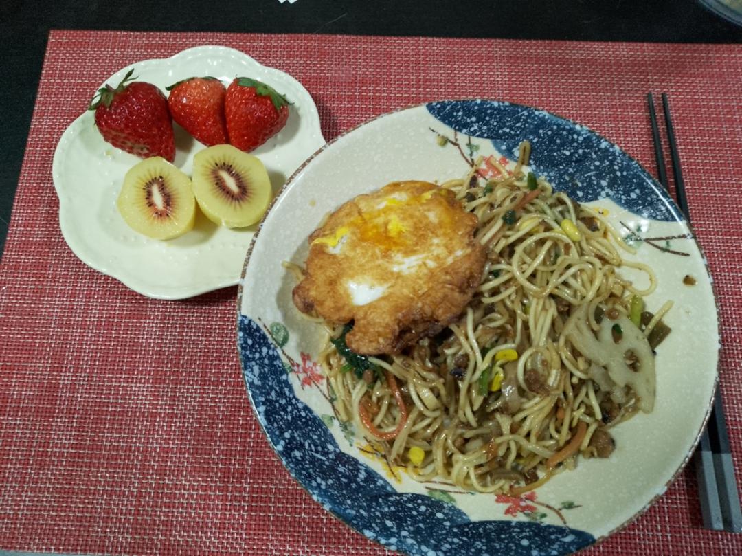今天吃虾籽酱油炒面