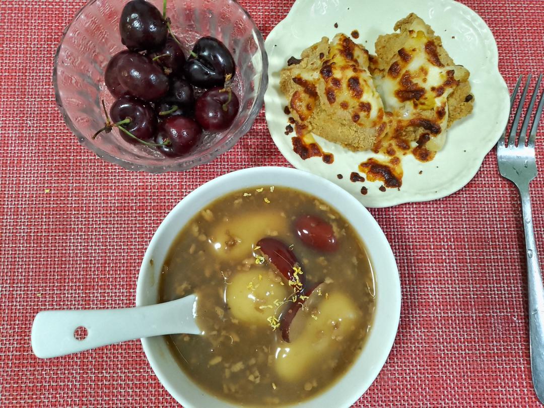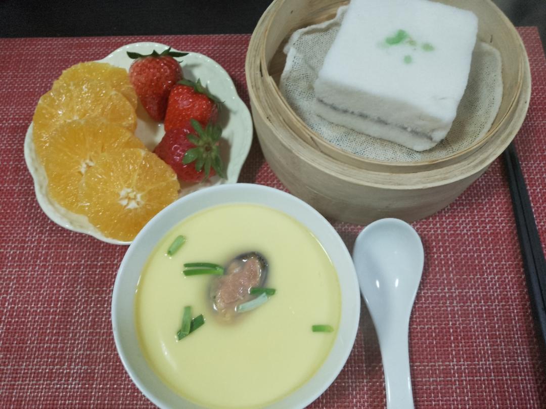 今天早餐吃炖蒸鸡蛋和南京特有的茶糕
