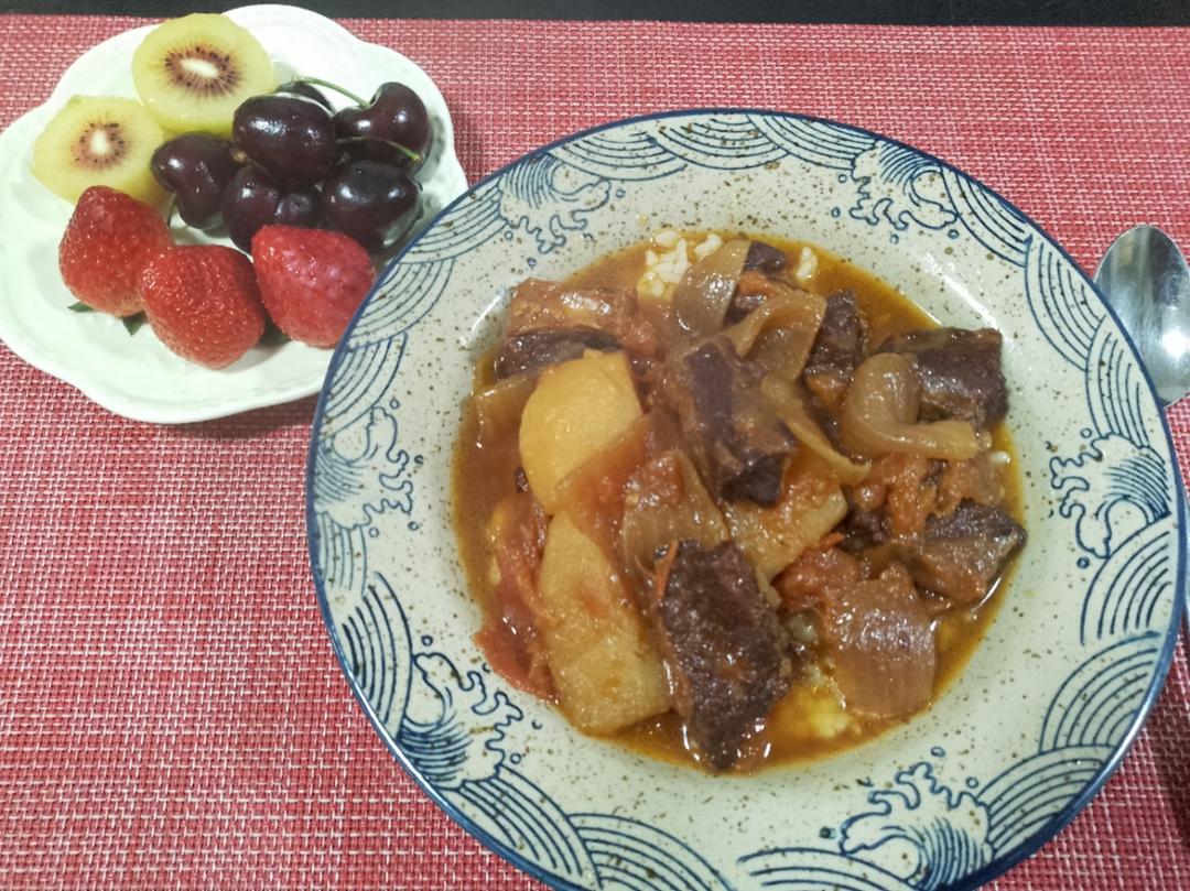 番茄土豆炖牛肋条盖浇饭