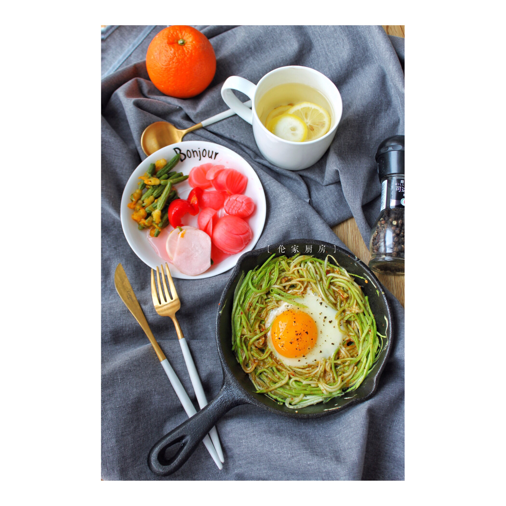 柠檬蜂蜜水+一个橙…
