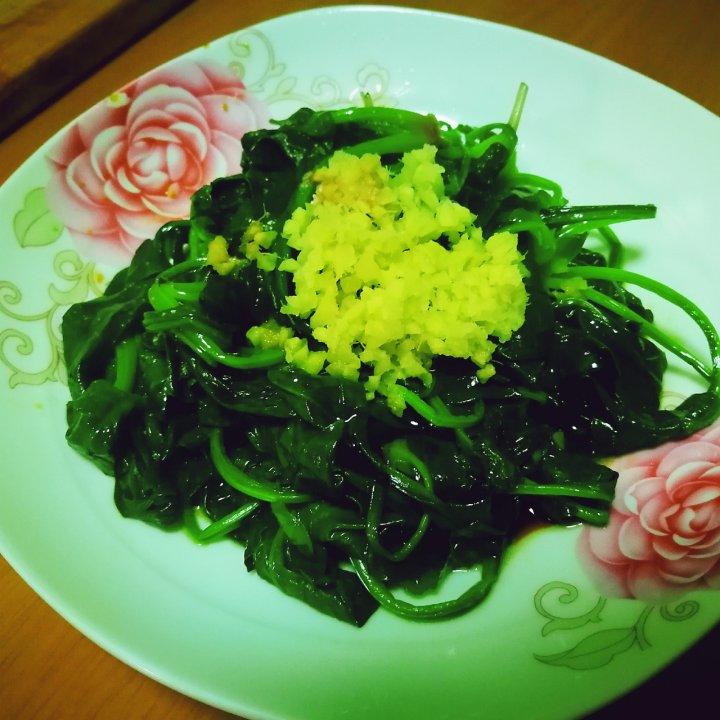 第一次尝试,菠菜压到碗里差点没倒出来,菜有点多,可姜汁味道很不错。