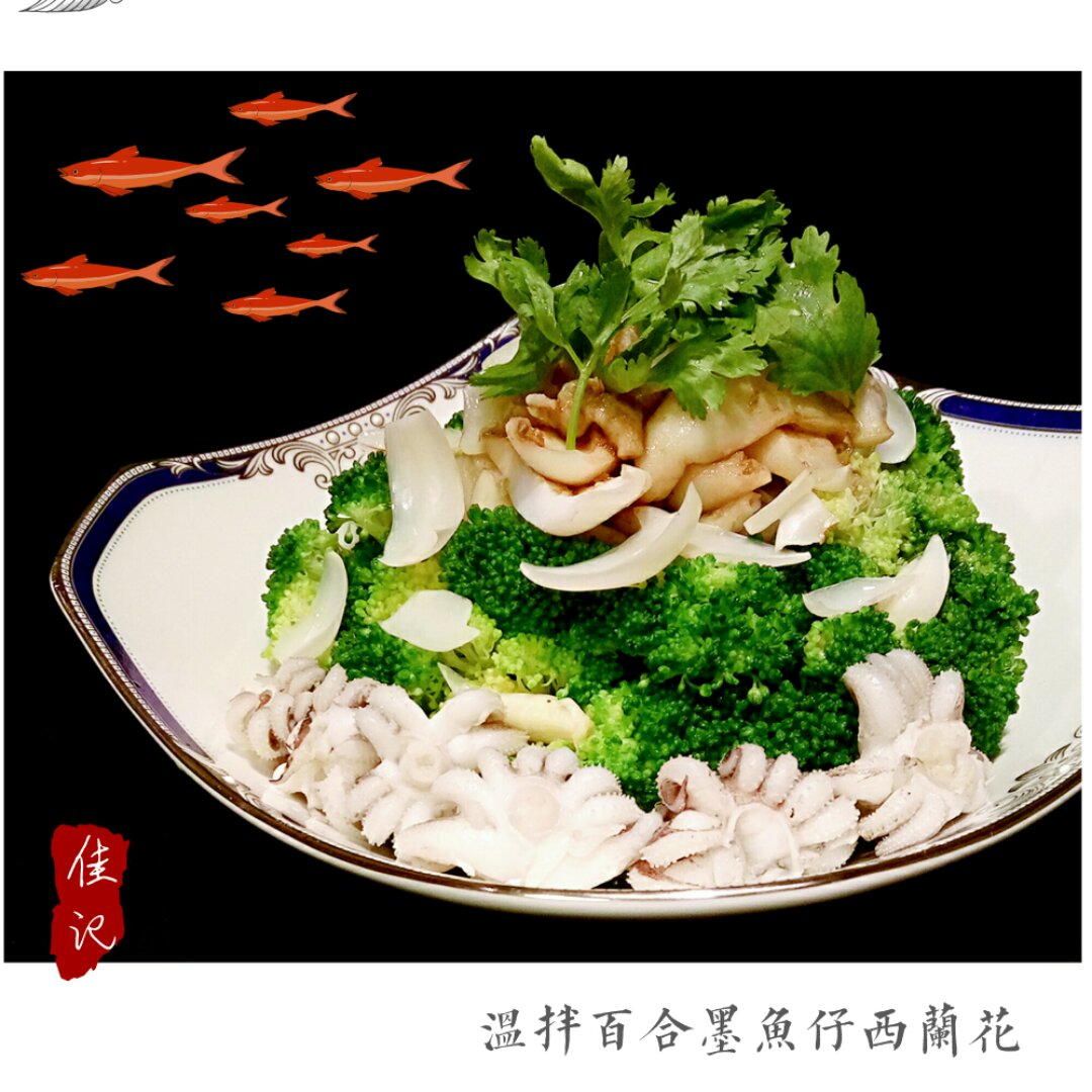 葱油杂蔬:芦笋木耳焯熟过凉,加上百合、红椒...