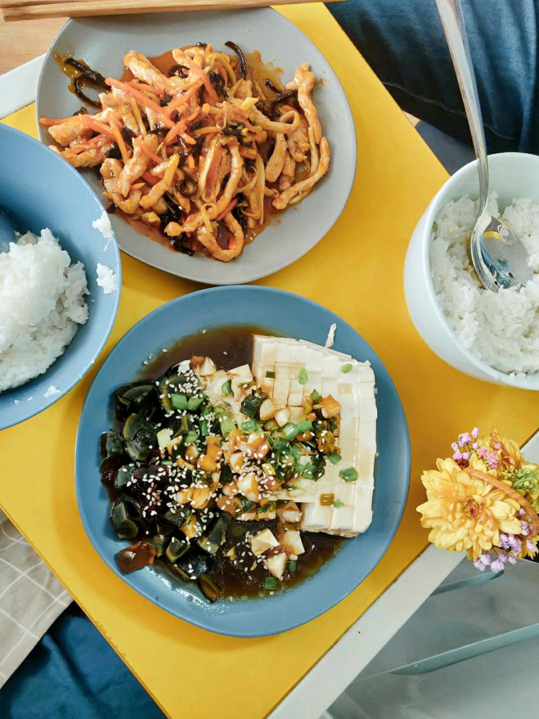 皮蛋豆腐+鱼香肉丝