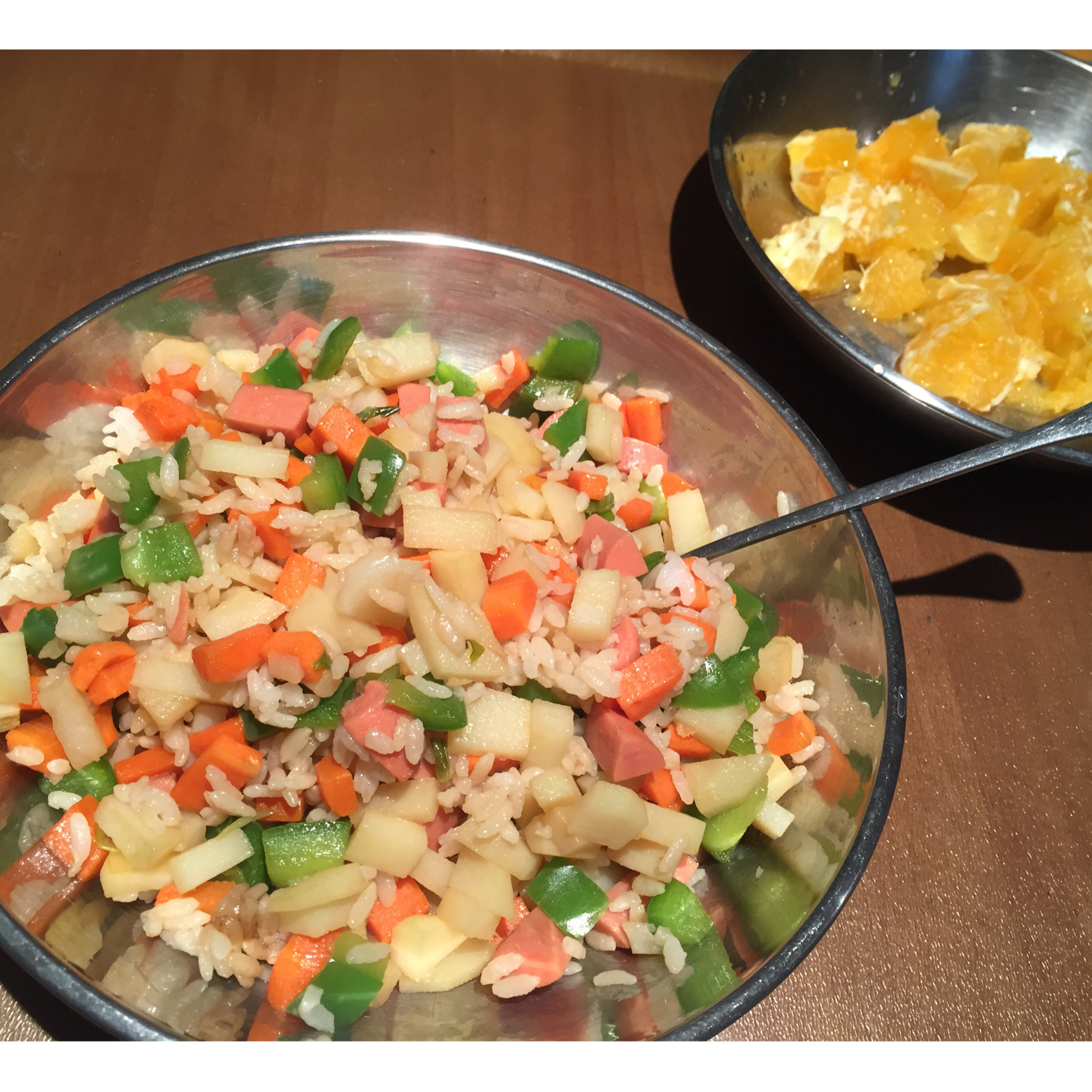 昨晚的晚饭,又磨叽的发到今天早饭里了。近处这盘,我的。远处那盘,小妞儿的。都很棒,都吃得精光。 #早餐•2016年3月1...