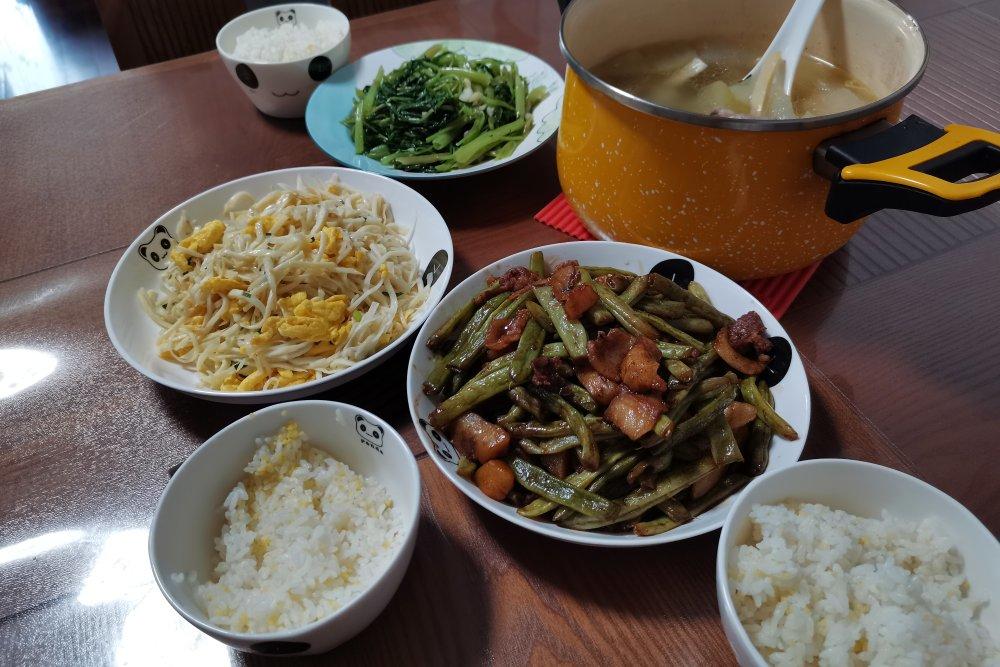 豆角炒肉 茭白炒蛋 炒空心菜 扁尖冬瓜小排骨汤