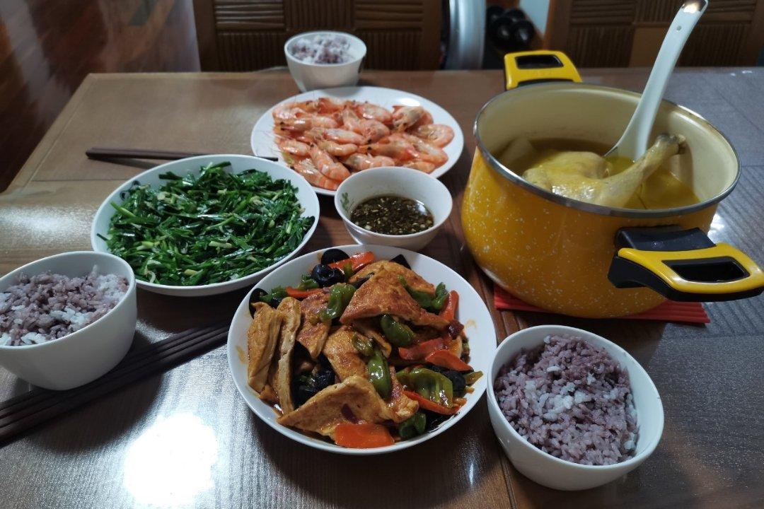 家常豆腐 虾皮韭菜 白灼基围虾 冬瓜鸡汤