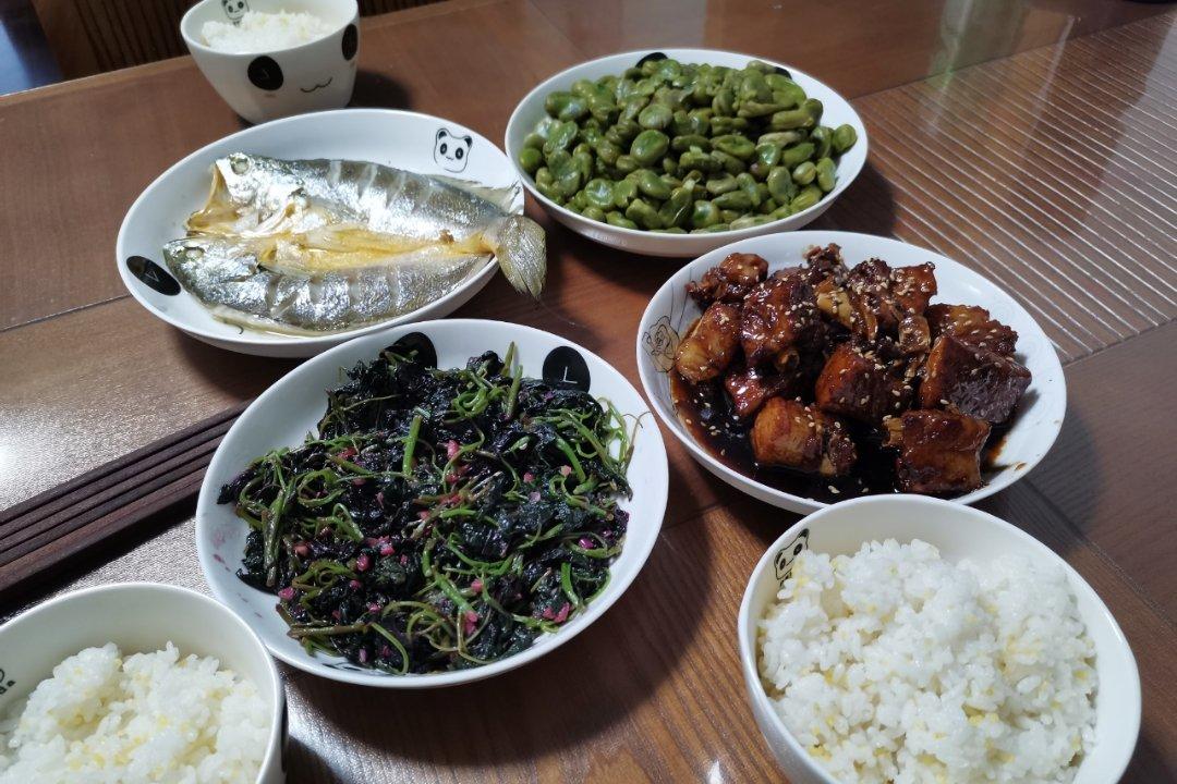 糖醋排骨 炒蚕豆 清蒸黄鱼 炒苋菜