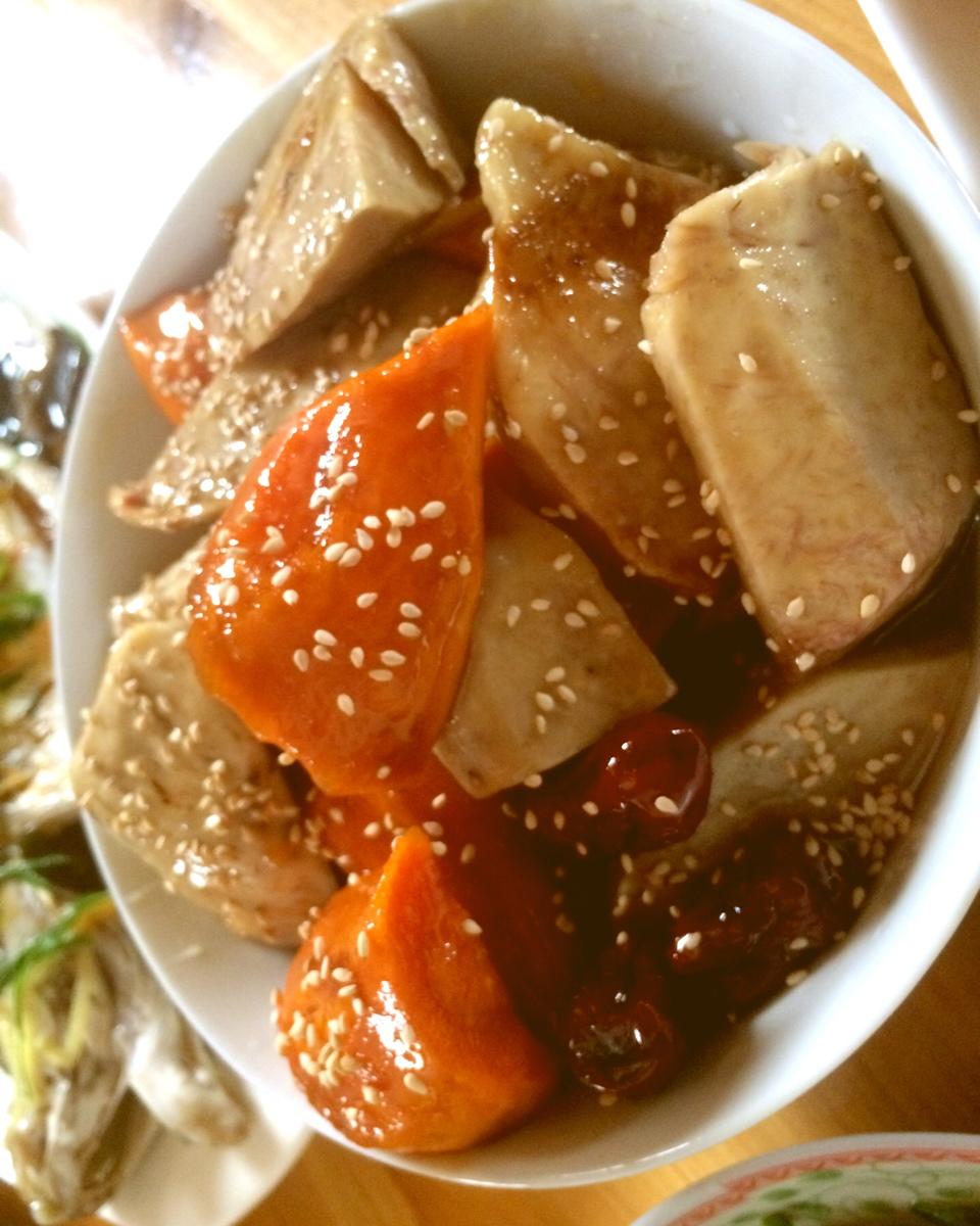同理做了拔丝地瓜和芋头,满满的一盘金玉满堂~~