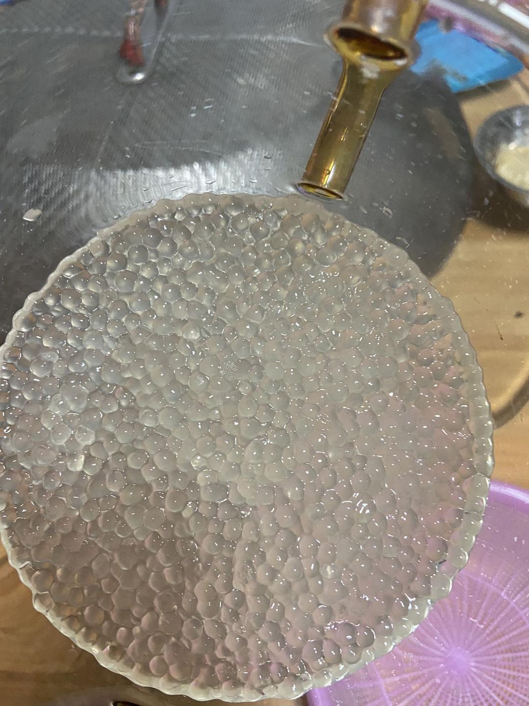 上次剩的西米,又折腾了一翻,这次煮西米有经验了,煮沸就捂着。