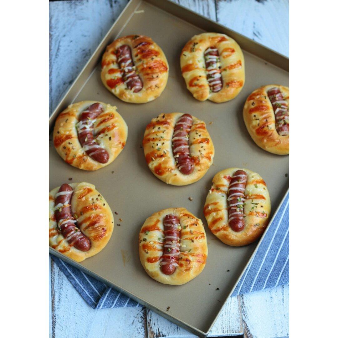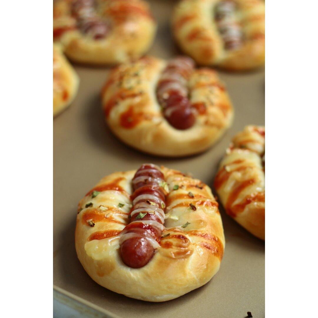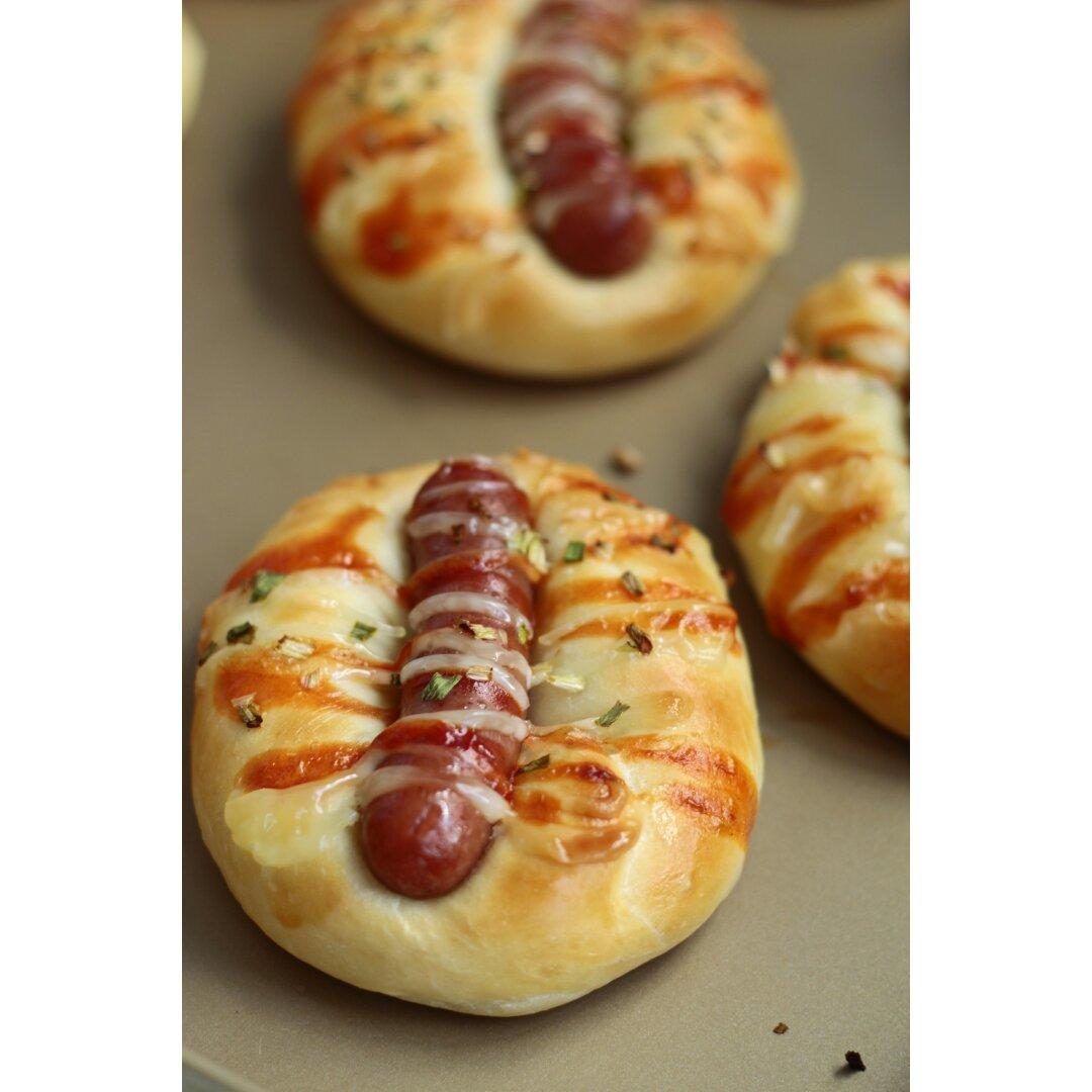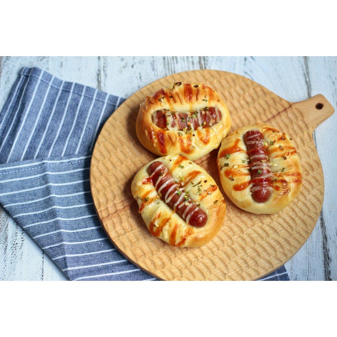 脆皮肠搭配面包自然是极好的😄~