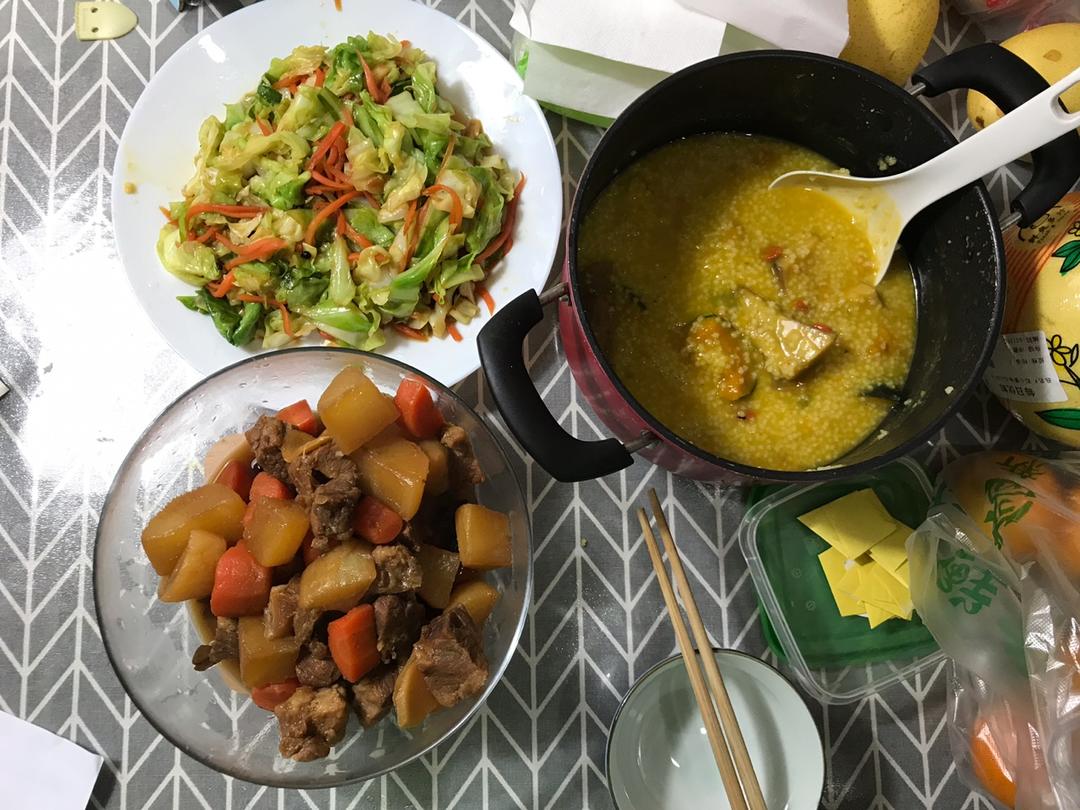 牛肉萝卜汤泡饭,加妈妈带来的红肠,两碗米饭都不够😋
