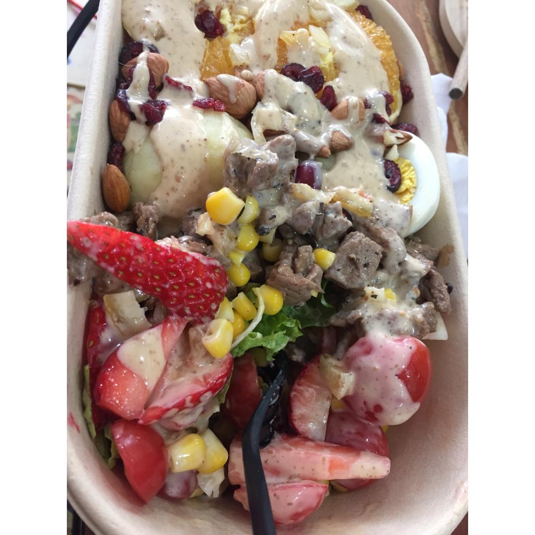 牛肉沙拉,这位妹子的沙拉料足,味美,吃不腻