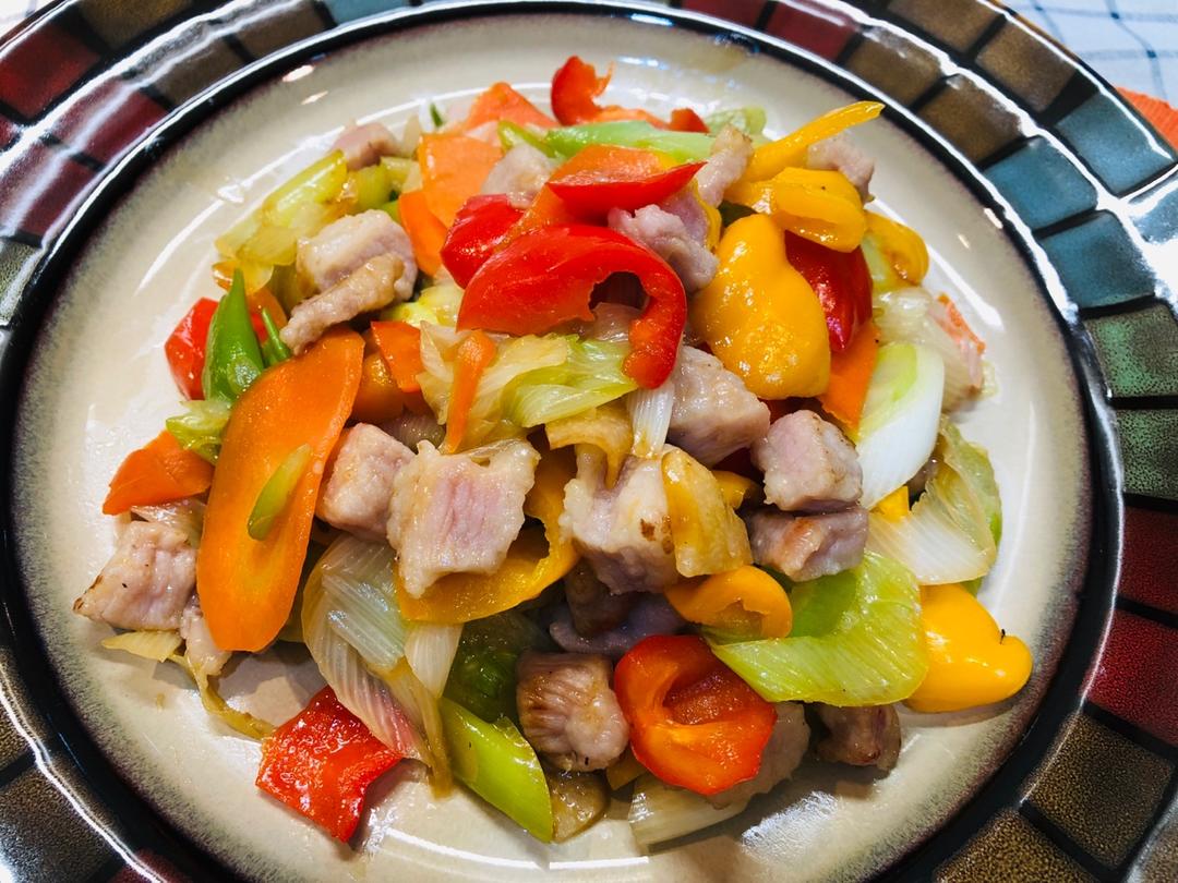杂菜炒猪颈肉块
