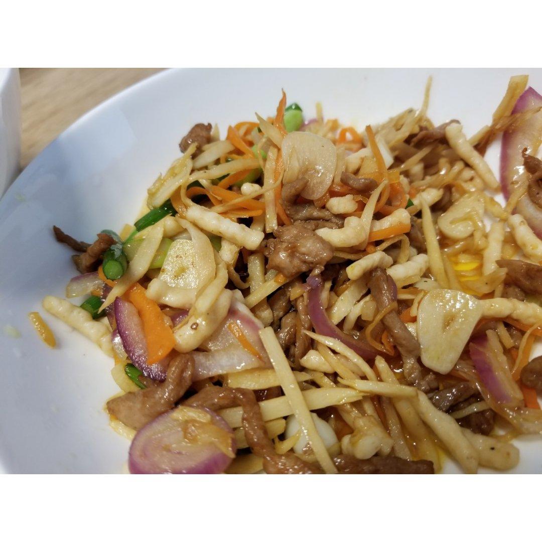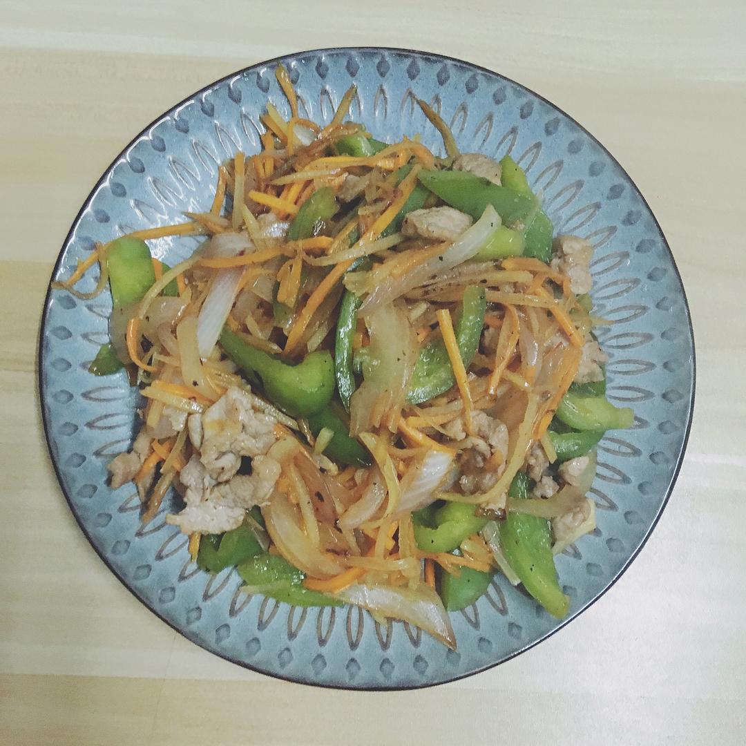 杂菜炒肉丝(洋葱,青椒,胡萝卜,土豆)