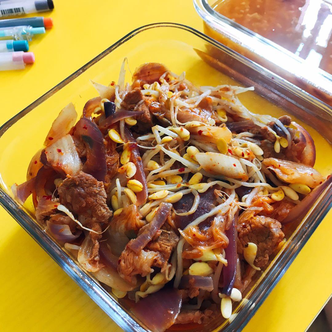 一人食:白米饭配韩式泡菜五花肉。吃饱了才有力气减肥[奋斗]