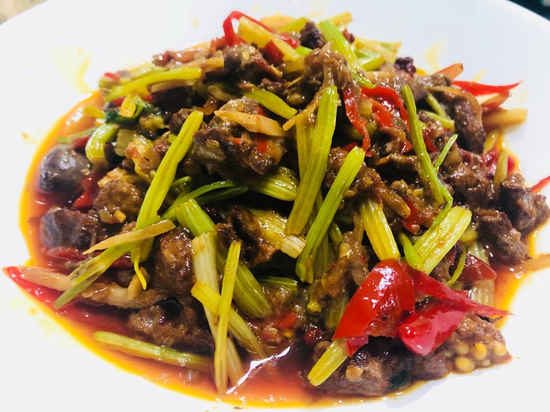 这个菜要好吃,鸡杂要提前薄芡酱油辣椒酱码味,鸡肝单独先下,断生捞出,再炒别的,注意加入两粒冰糖,最后起锅前放入鸡杂翻炒几...