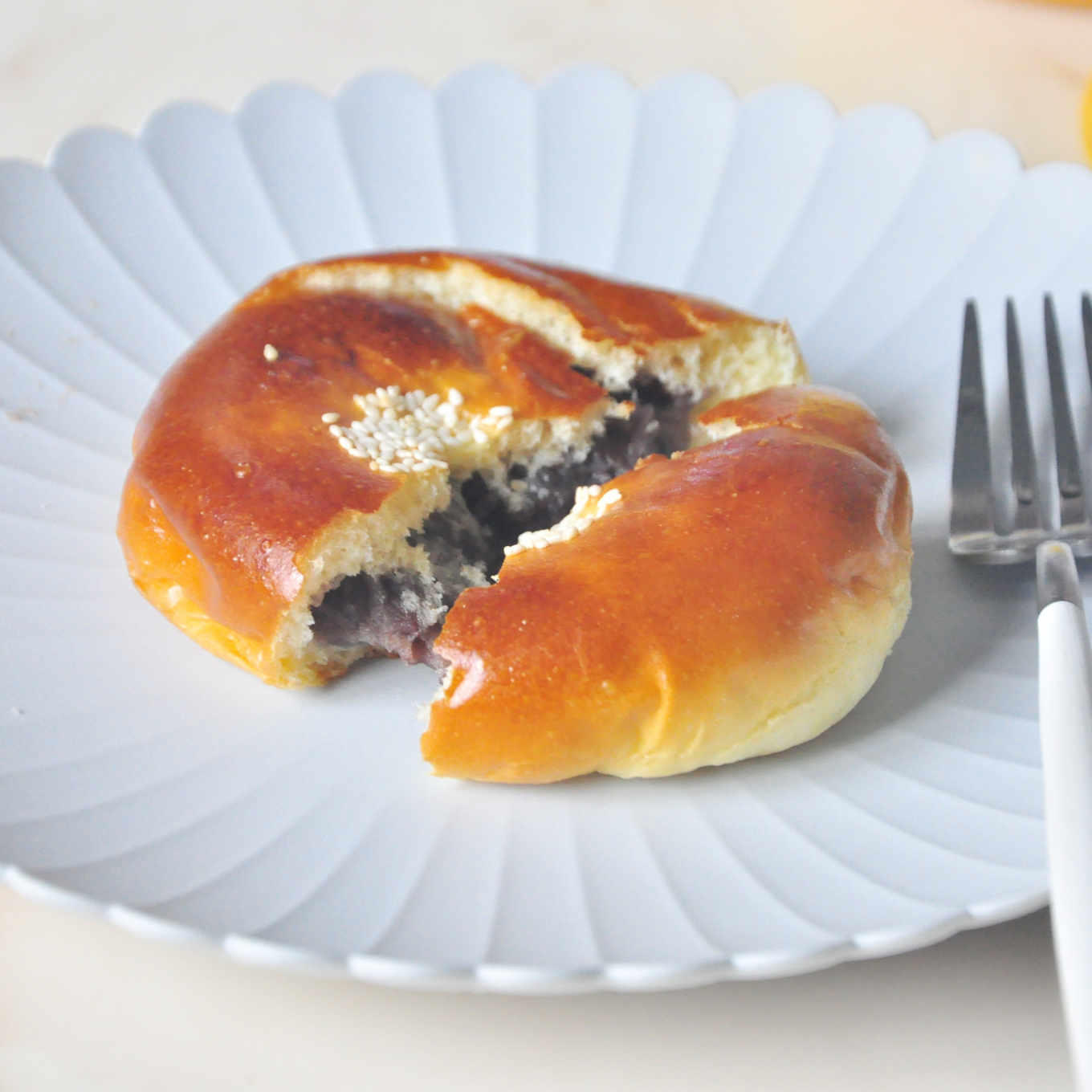 红豆面包。豆沙好细腻。掰开它🤗🤗🤗